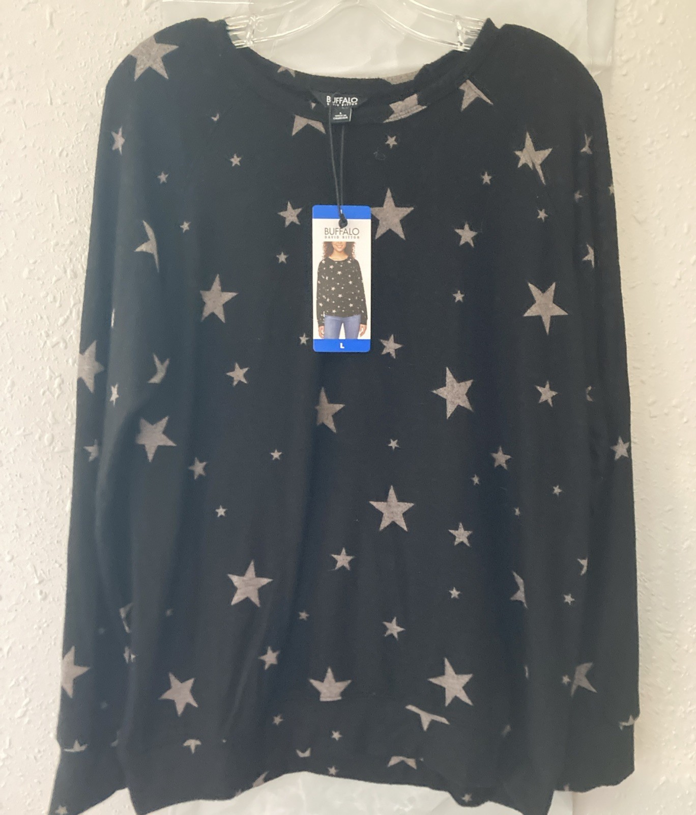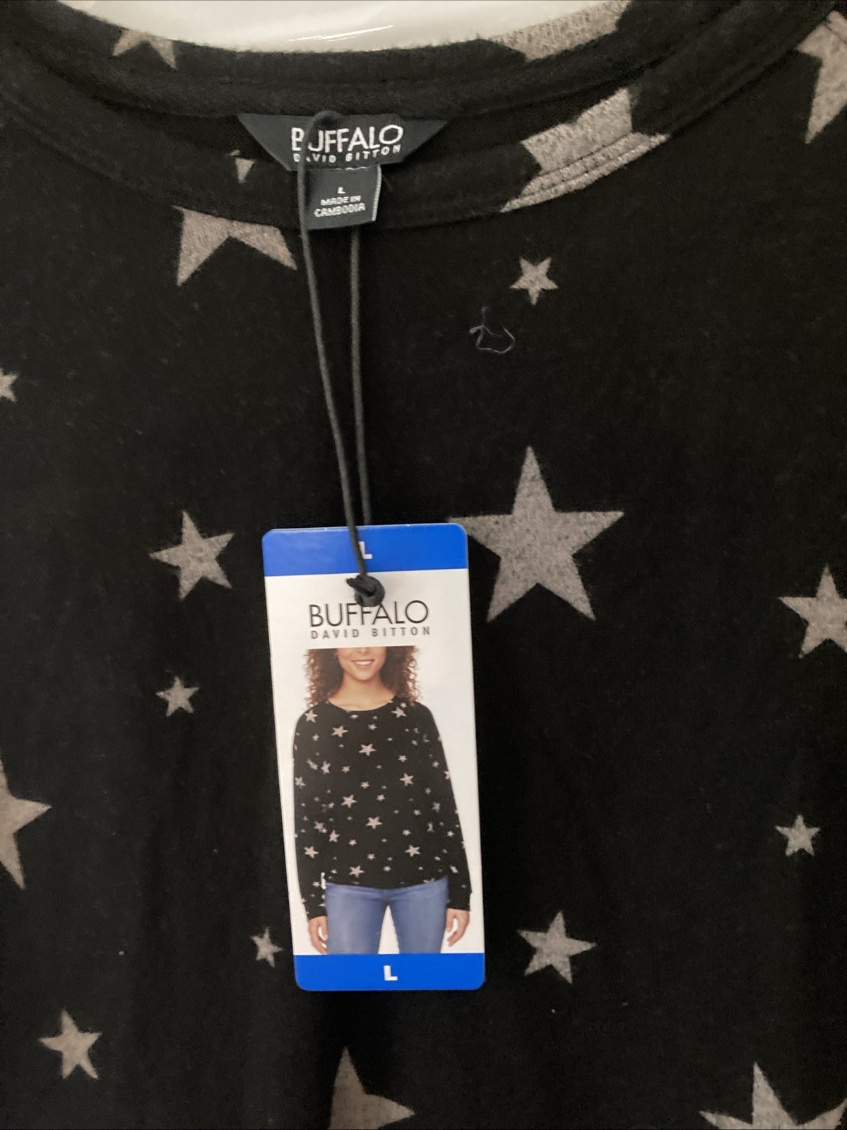 Buffalo by David Bitton Women’s Top Large Relaxed Fit , Black Heather Mini Star.