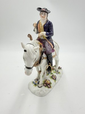 Antique Volkstedter Porcelain 1920 Plowman On Horseback Figurine FLAWED