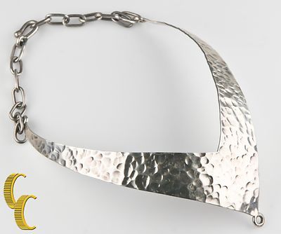 Gorgeous Sterling Silver Hammered Plaque Bib Necklace