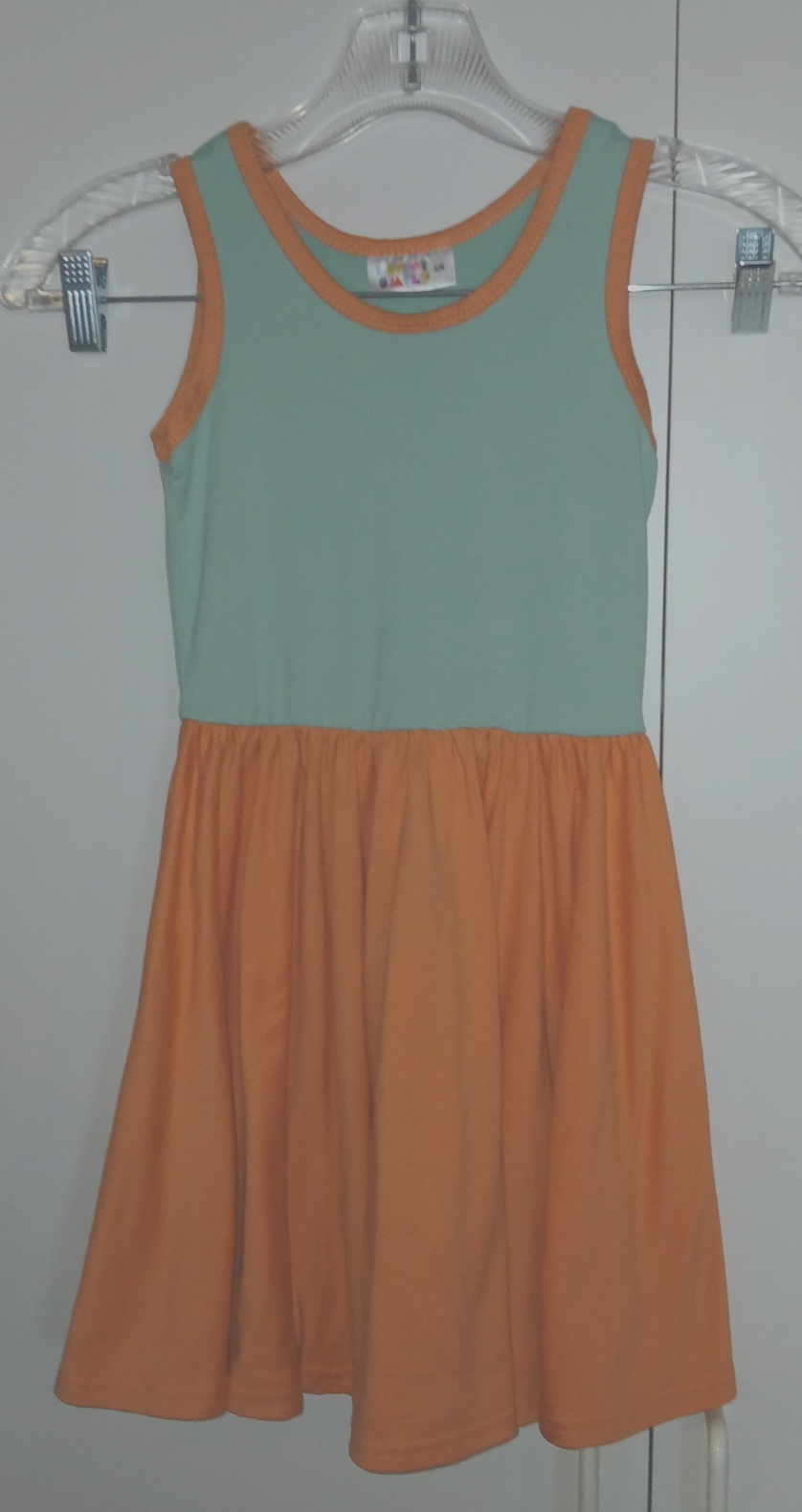 THIS IS A CUTE DOT DOT SMILE GIRL'S SLEEVELESS PULLOVER ORANGE/GREEN KNIT STRETCH DRESS IN A SIZE 5/6. IT IS IN EXCELLENT, WORN ONCE, CONDITION.