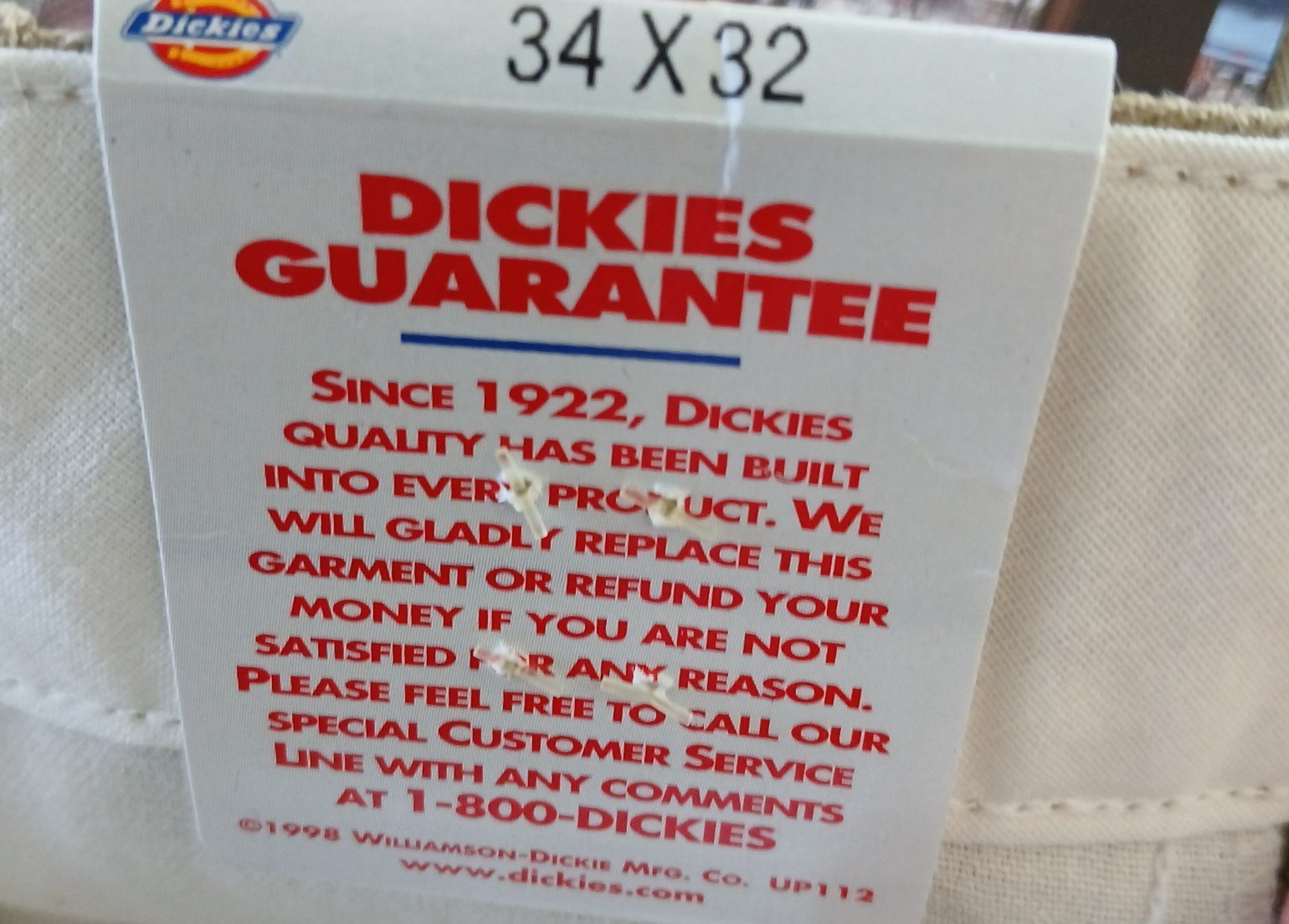 THIS IS A GREAT PAIR OF DICKIES MEN'S CANVAS WORK PANTS IN A SIZE 32" x 32". THEY ARE NEW WITH TAGS WHICH SAY 34" WAIST BUT THEY HAVE BEEN TAKEN IN TO 32".