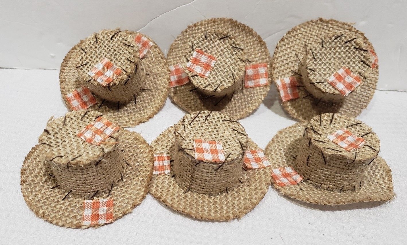 Up for sale are these adorable adorable MINI scarecrow hats. These are great for bowls or crafts or just about anywhere you need a little cute Fall decor. The hats measures approx 1" high, the opening is 1" and approx 2.5" in diameter. These are new never used. Set of 6