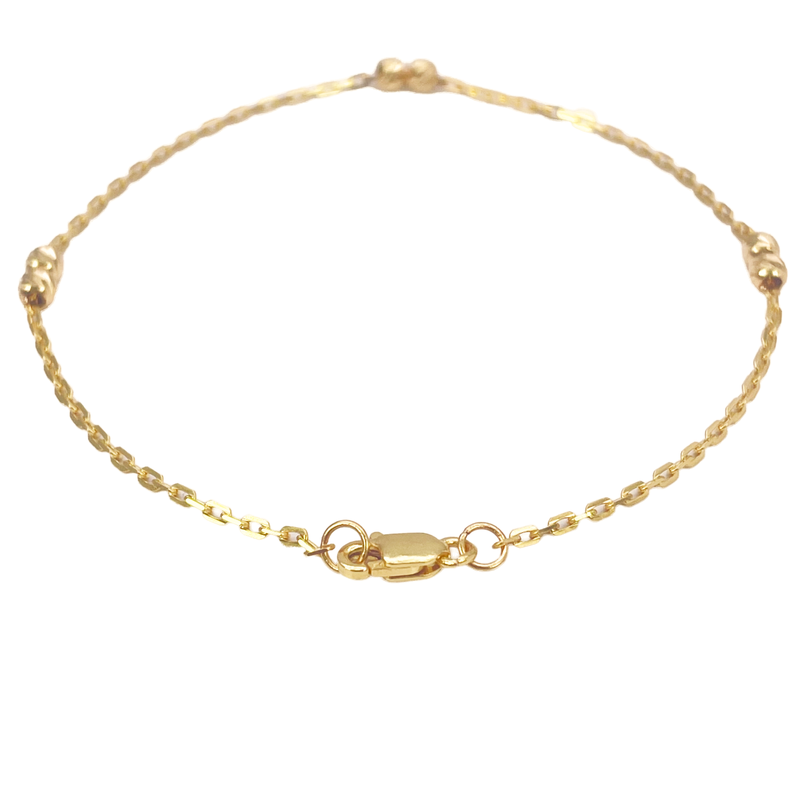 22ct Gold Beaded Bracelet Six Diamond Cut Beads Cable Chain 7 Inches 2.9mm Width