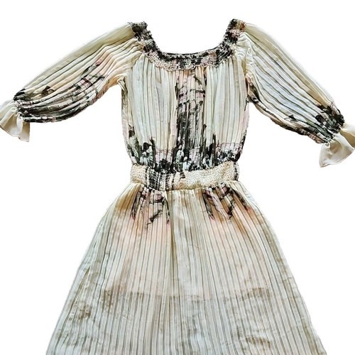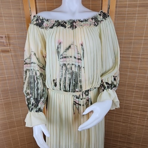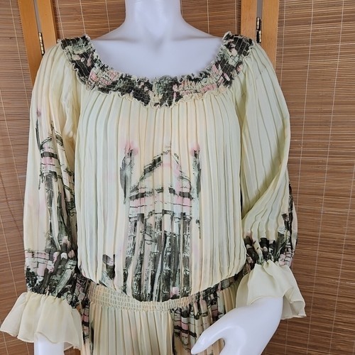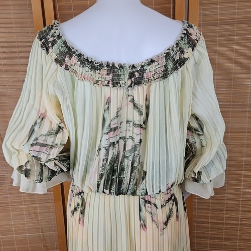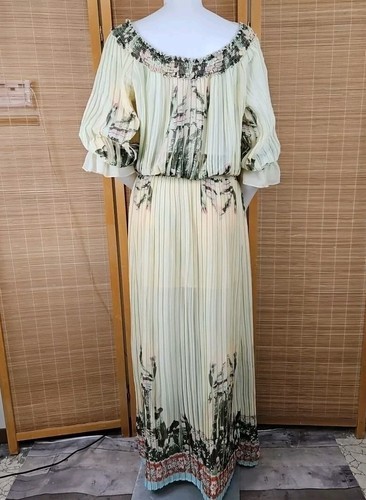 Ark & Co Boho Floral Maxi Dress Womens S Pleated Sheer Chiffon Puff 3/4 Sleeve