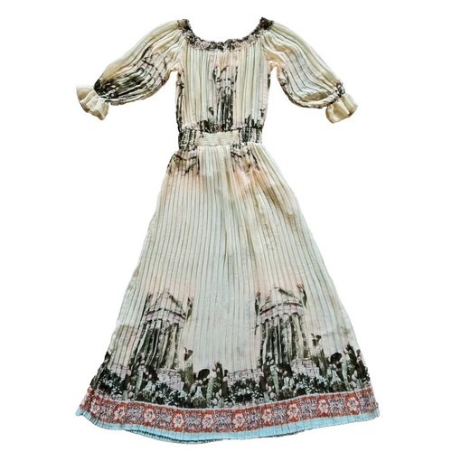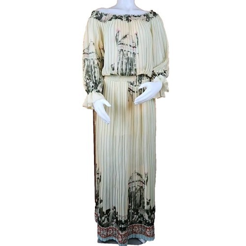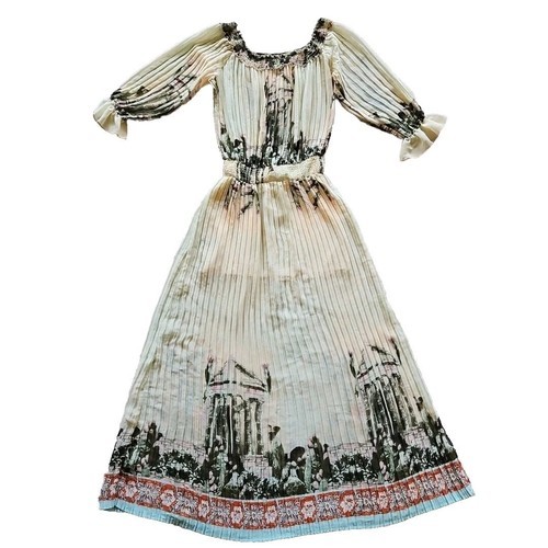 Ark Co Boho Floral Maxi Dress Pleated Sheer Chiffon Puff 3/4 Sleeve