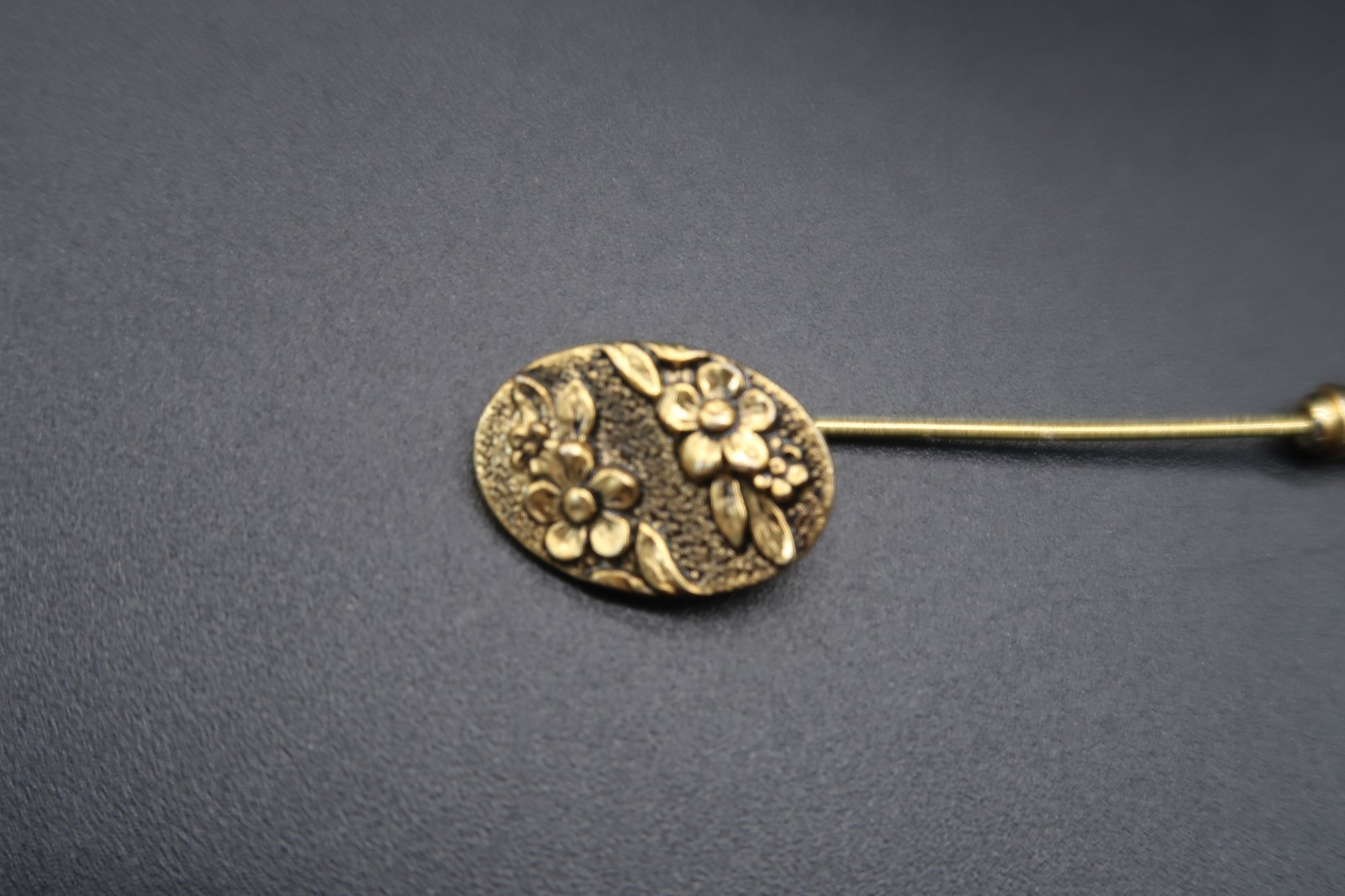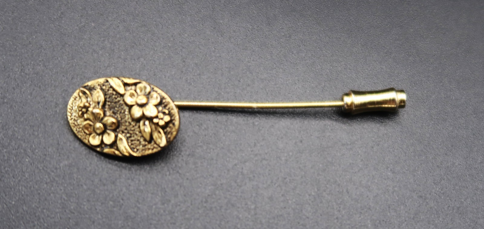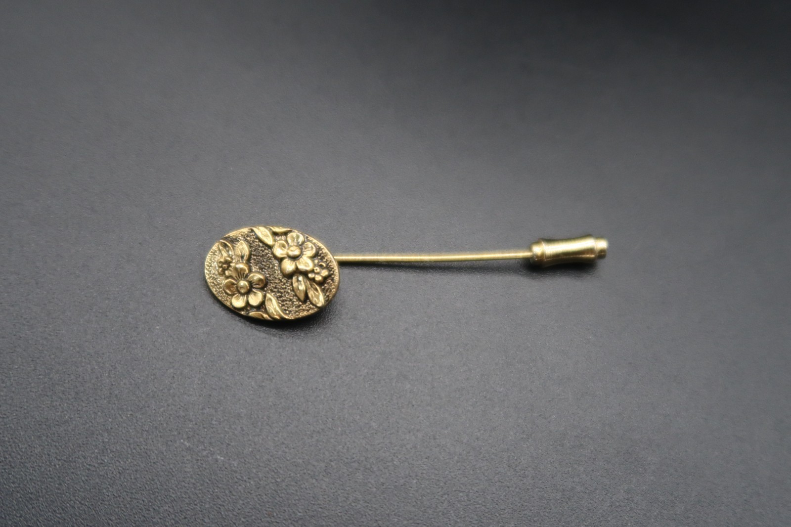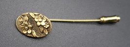 Art Nouveau Style Vintage Flower Stick Pin Brooch Gold Tone Oval