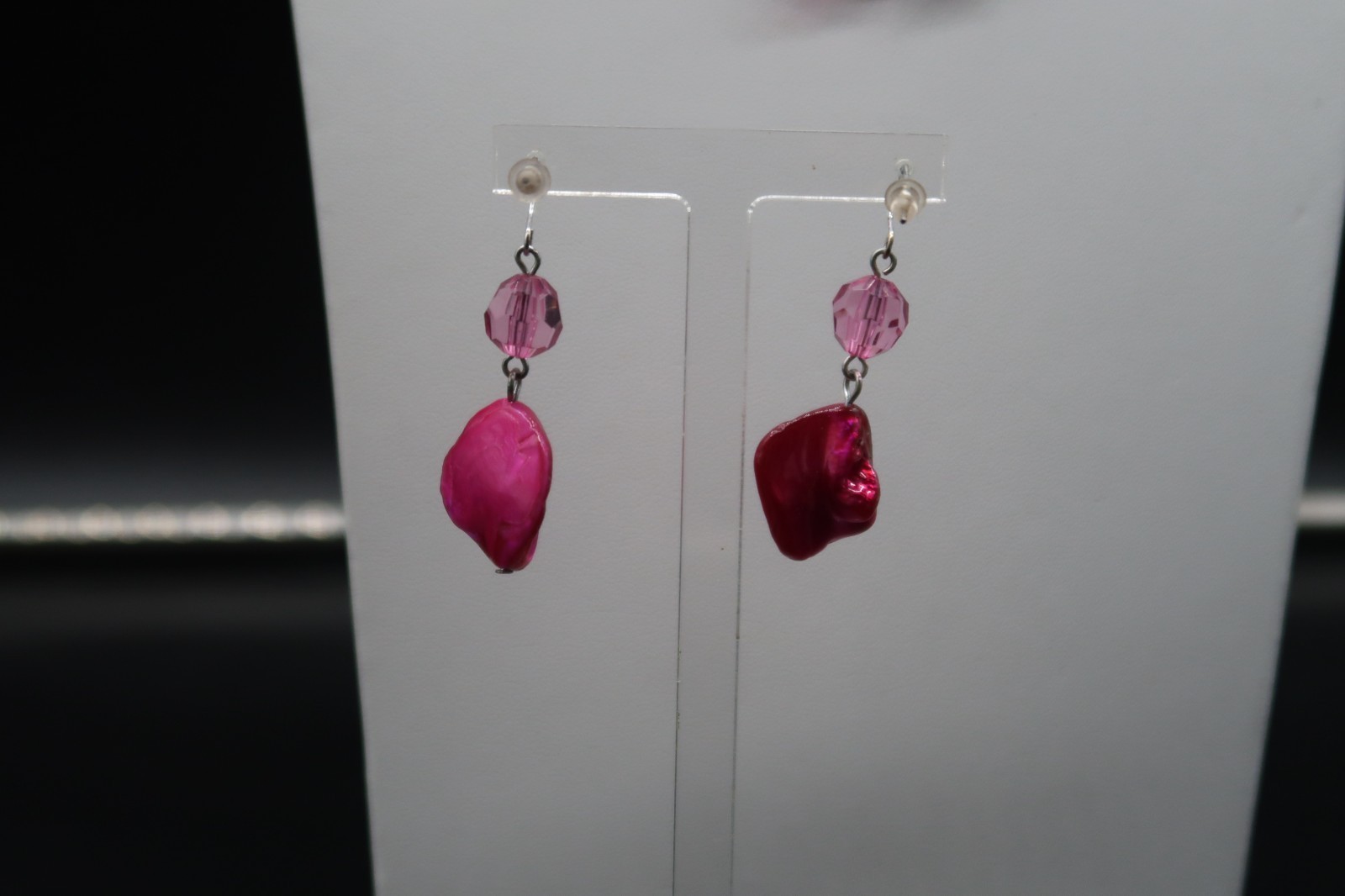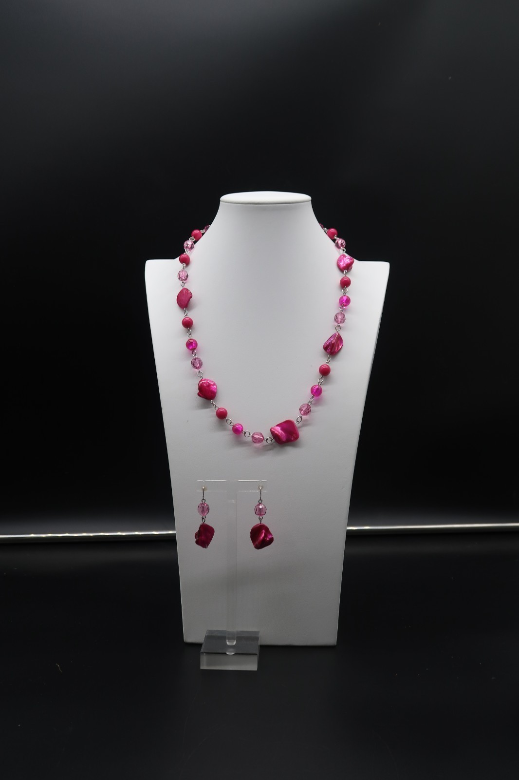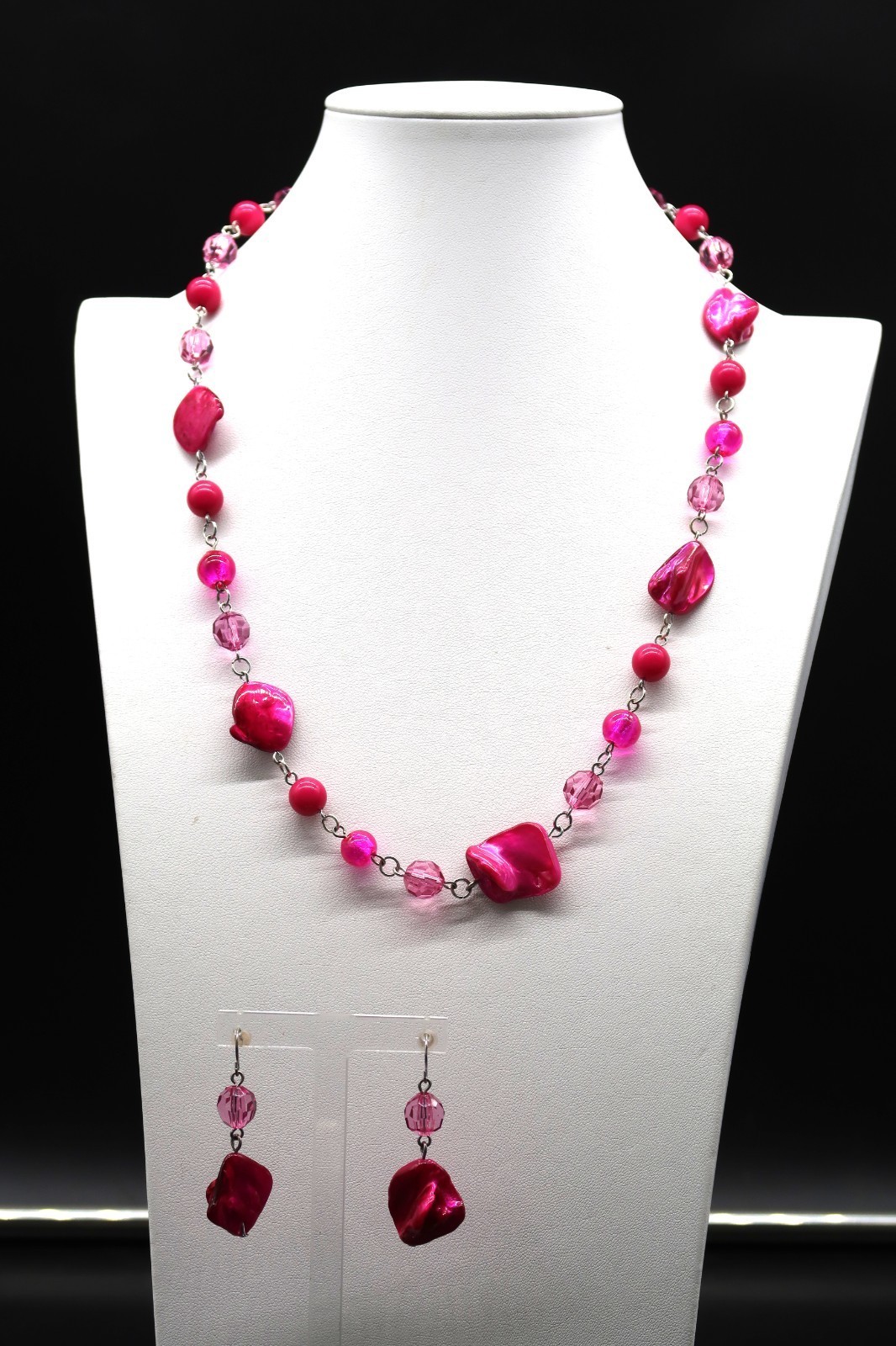Vtg Fuchsia Abstract Bead Necklace & Dangle and 18 similar items