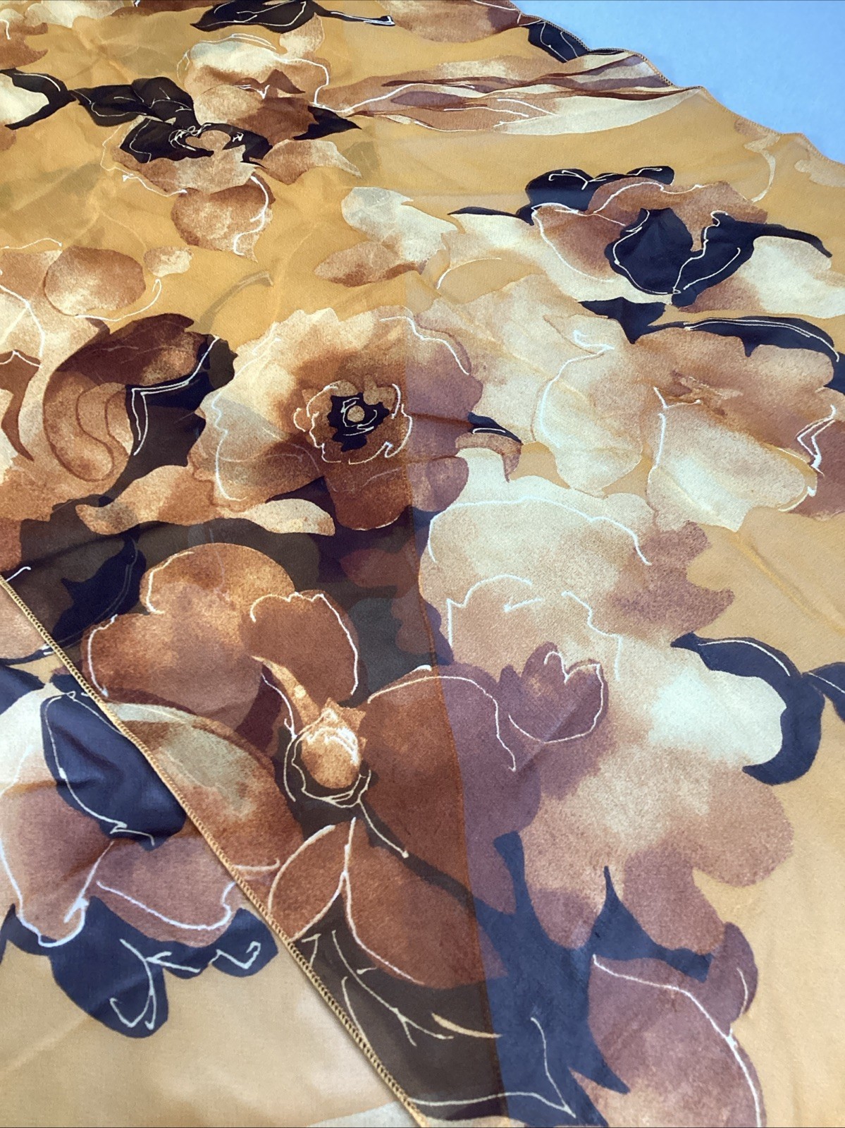 100% Silk Yellow Sheer Floral Scarf - 60x15” and 36 similar items