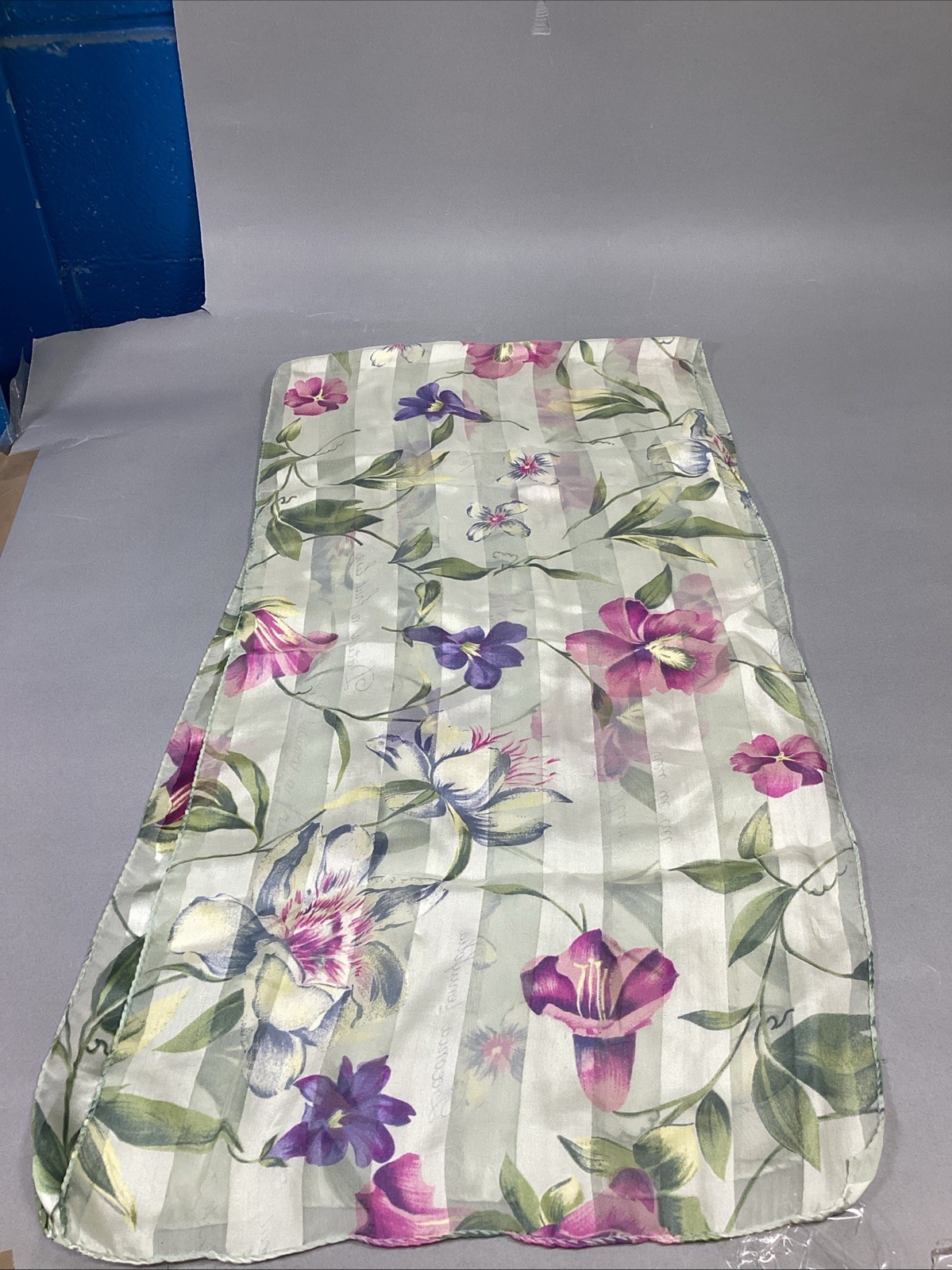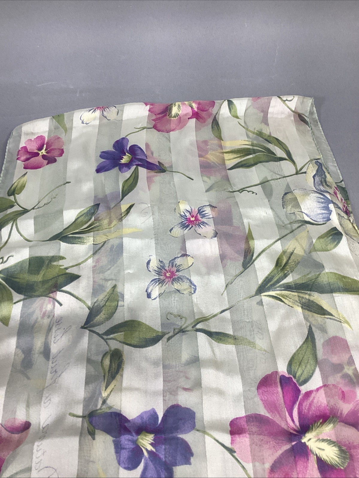 100% Silk Purple Pink Striped Women?s Floral Scarf - 60x15?. In good condition overall. I did notice a couple small stains on one side near the edge.