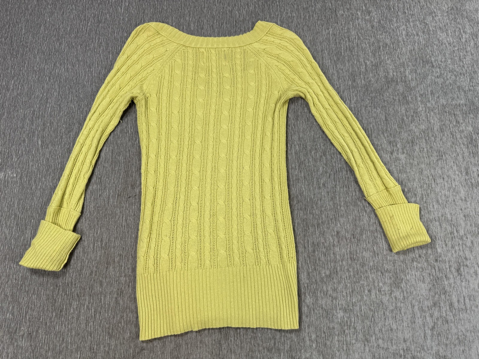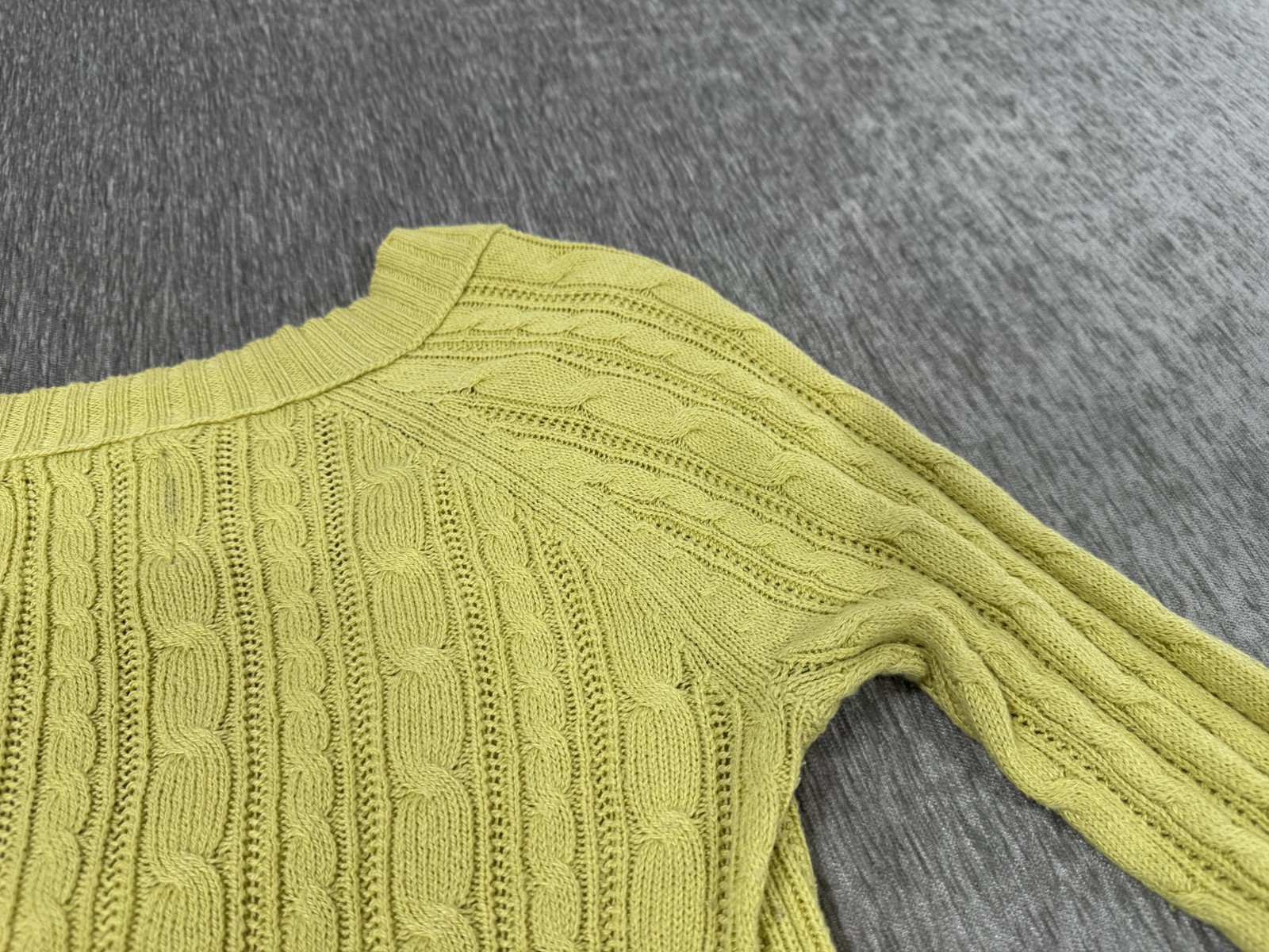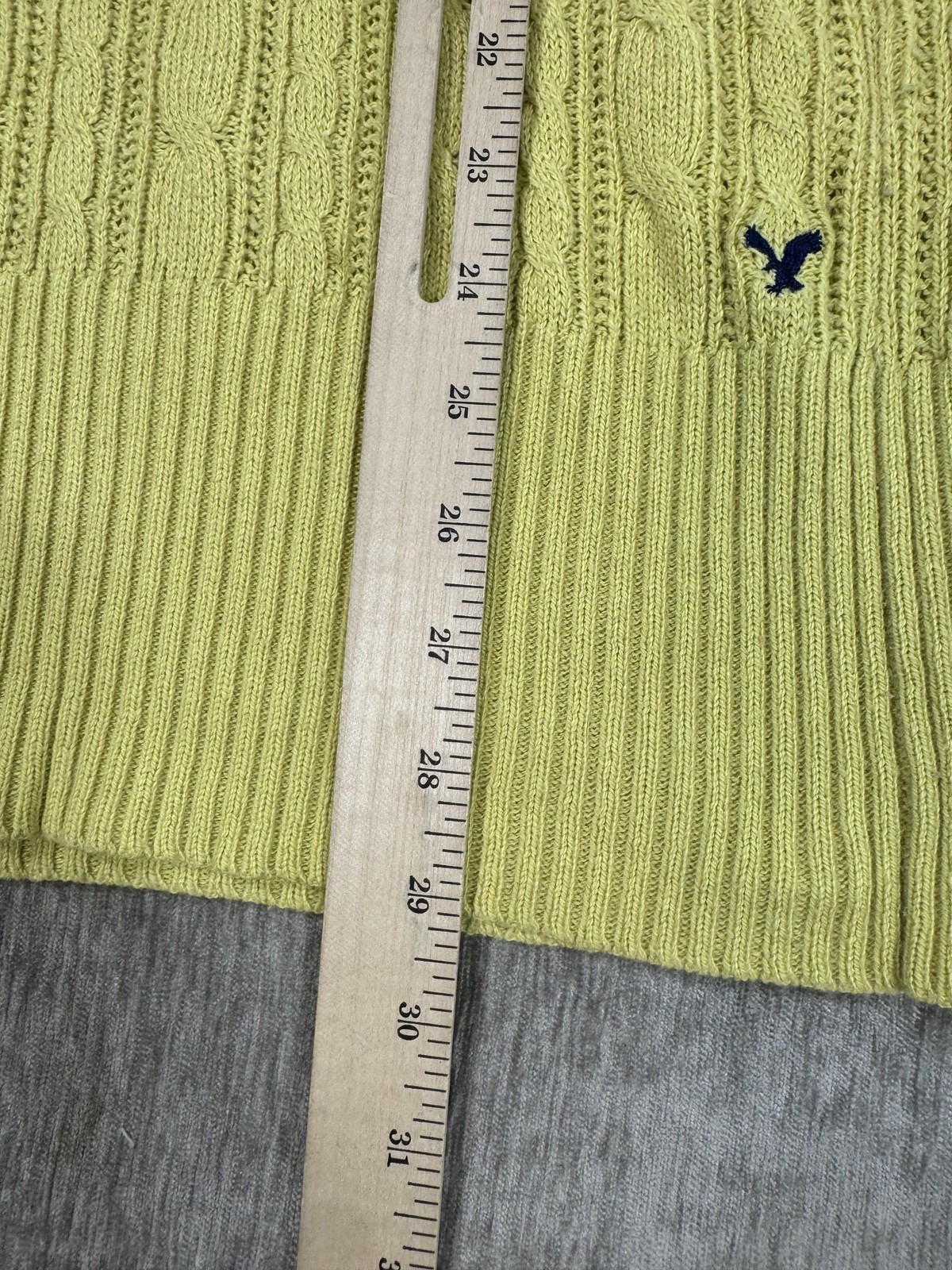 Vintage American Eagle Sweater Womens Medium Yellow V Neck Cable Knit Long y2k