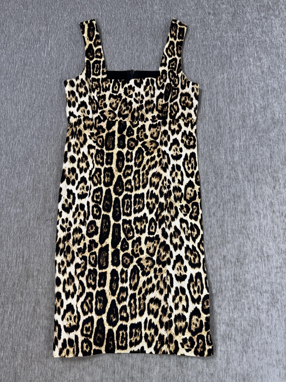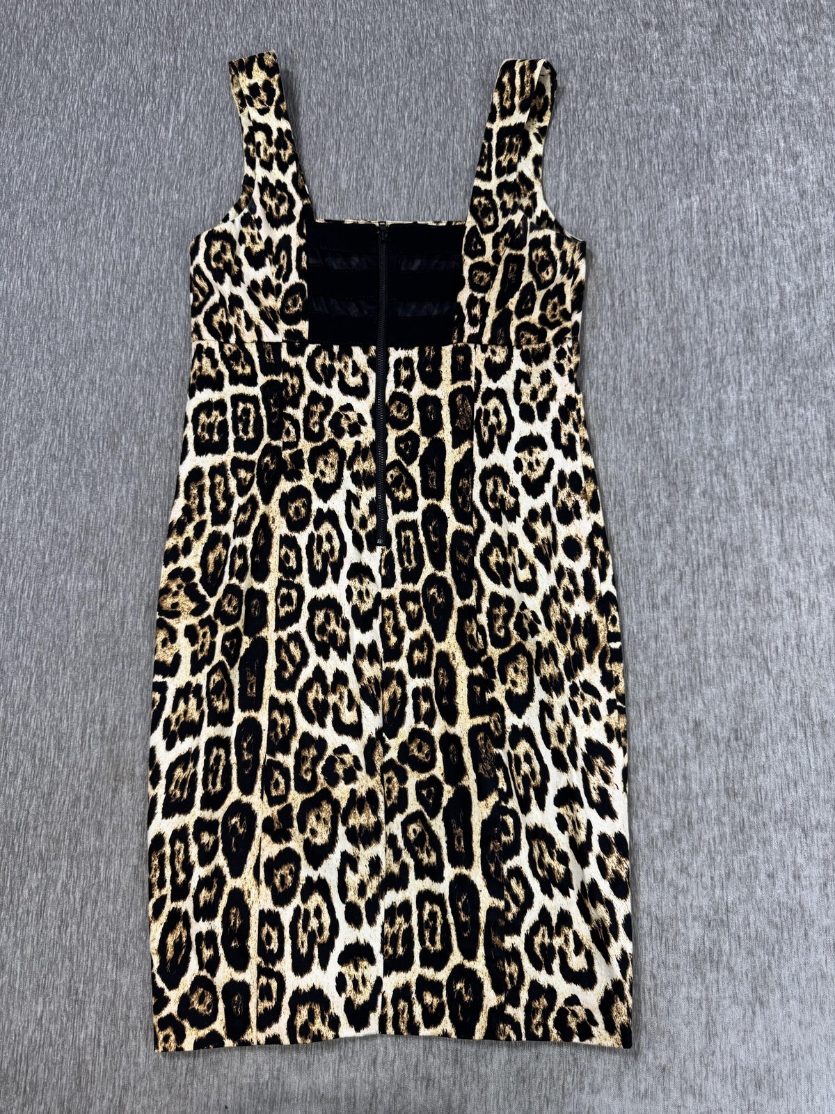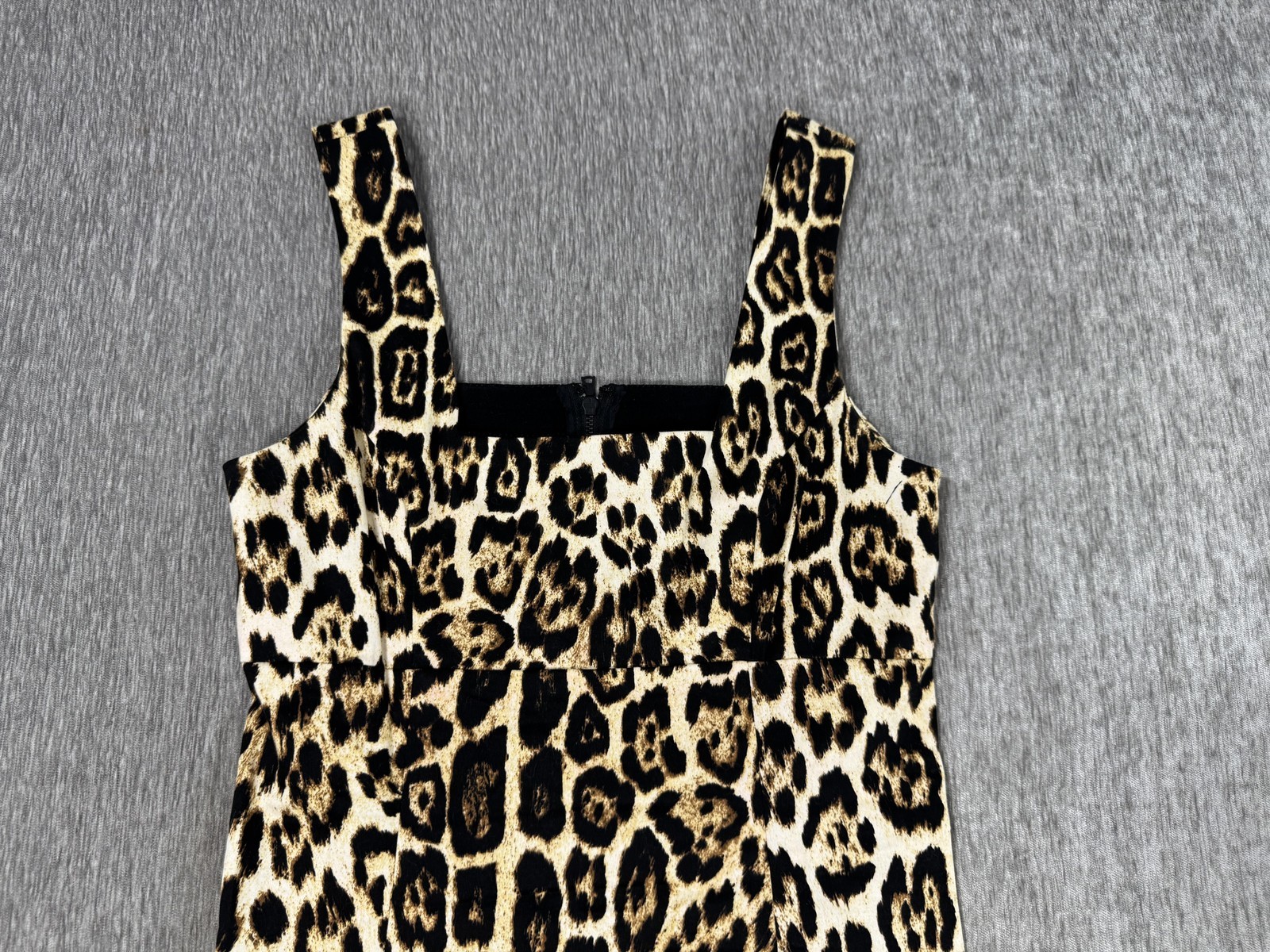 Alice + Olivia Dress Womens 8 Brown Black Leopard Animal Print Square Neck Mini