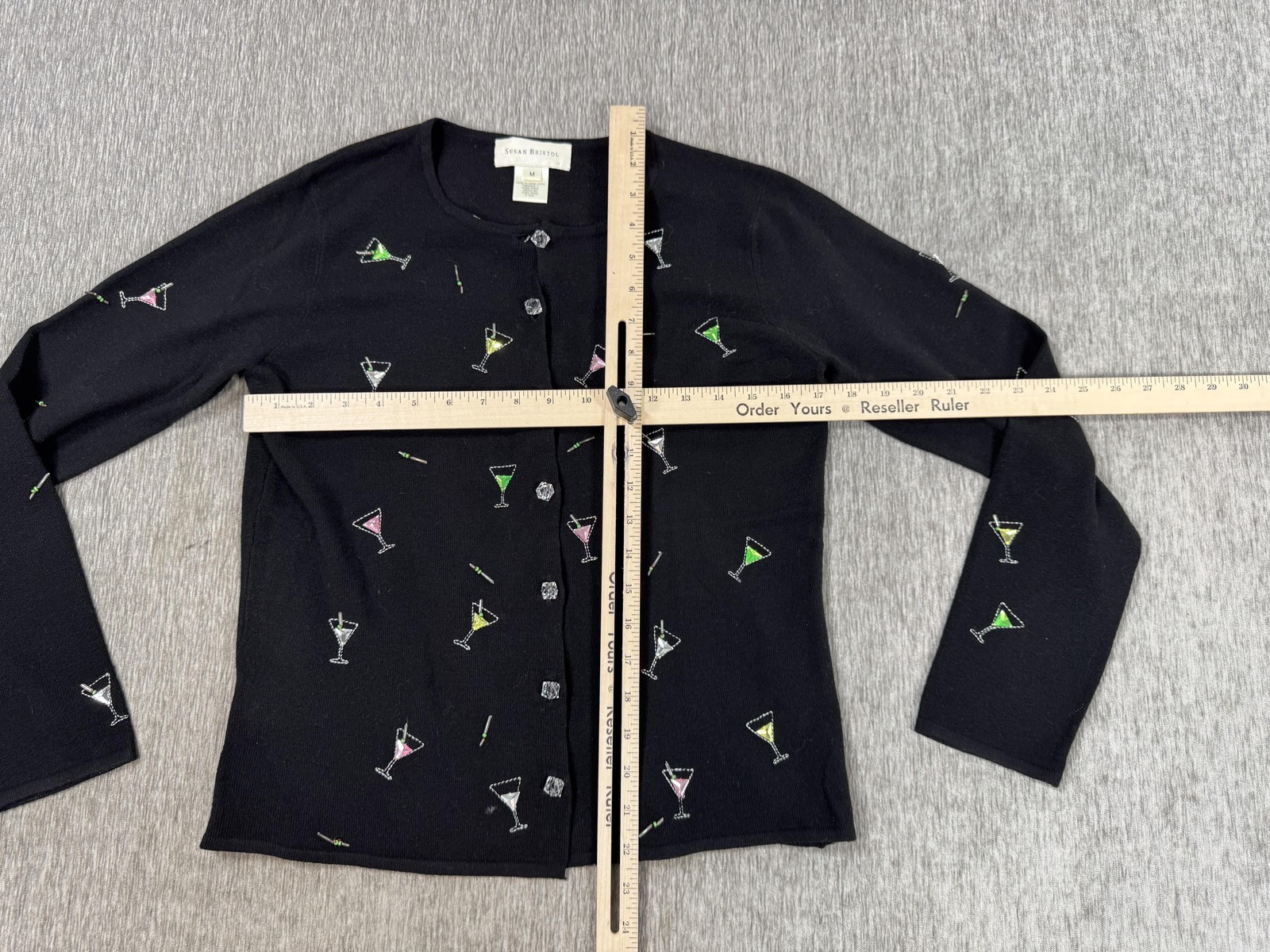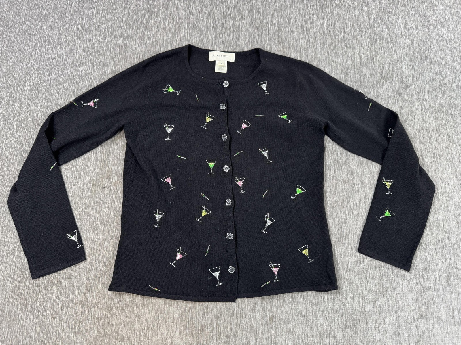 Item: Womens sweater cardigan with novelty cocktail glass embroidery