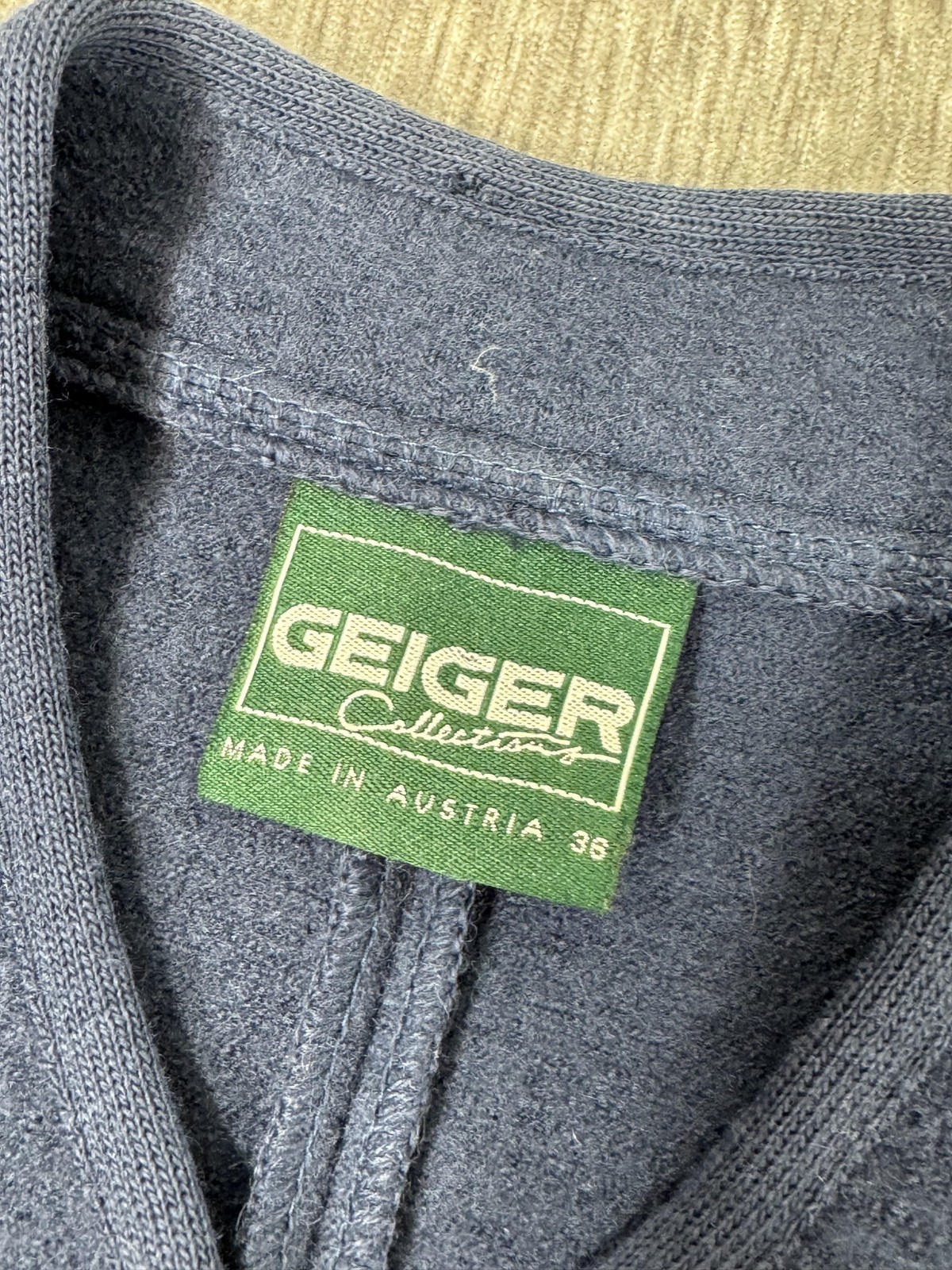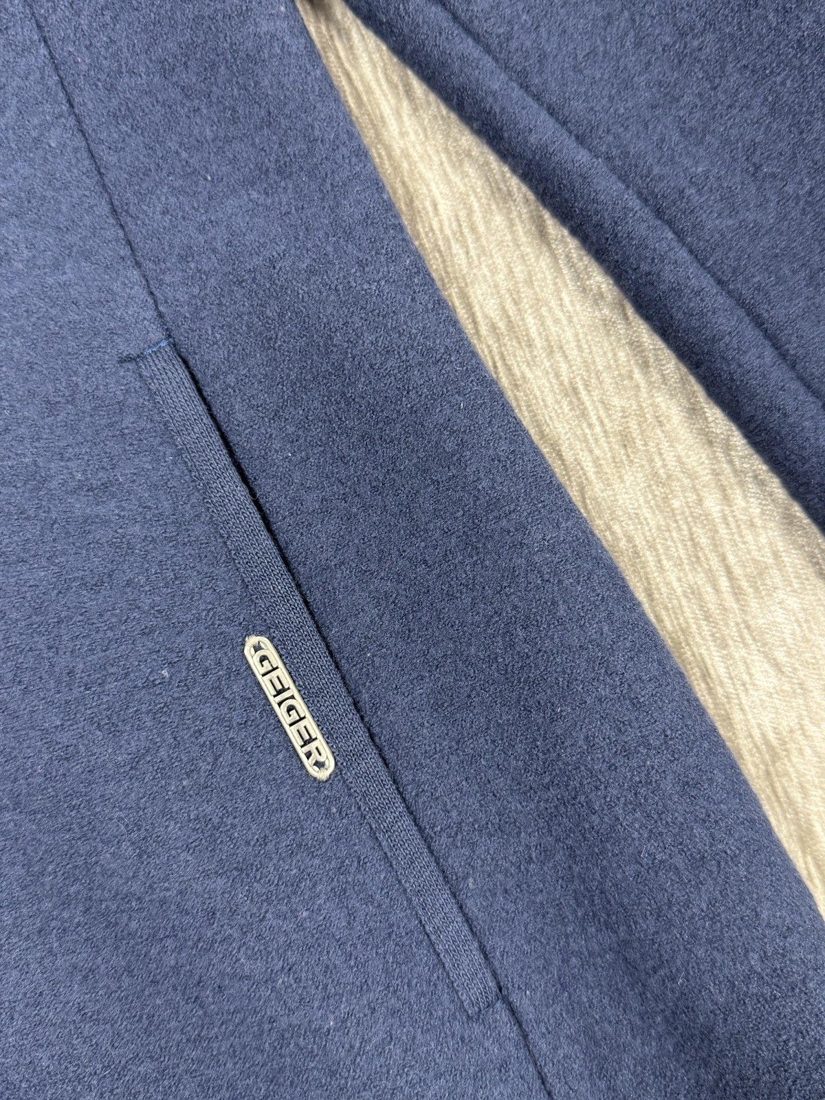 Two front slit pockets; small GEIGER metal logo badge at pocket