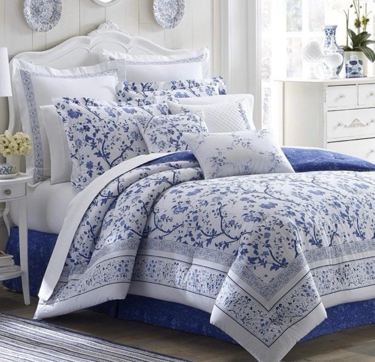 Laura Ashley Charlotte 4pc King Duvet Set Reversible White China Blue BNIP