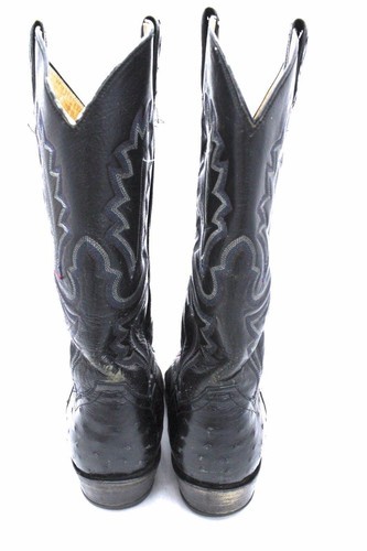 MENS PANHANDLE SLIM COWBOY OSTRICH SKIN LEATHER BLACK BOOTS SIZE 8.5 D