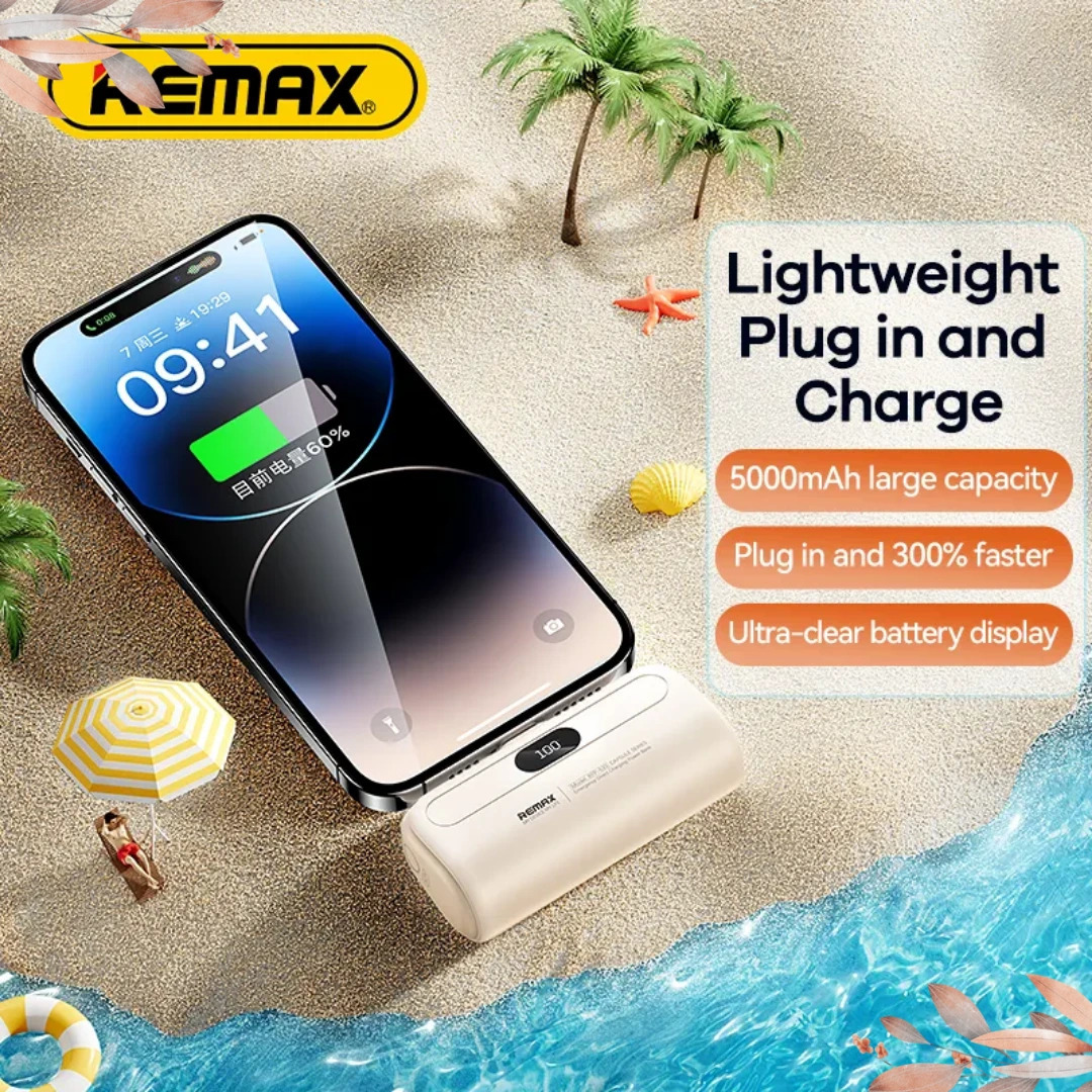 Remax 5000mAh Ultra-Thin Fast Charging Power Bank – LED Display, Type-C & Apple
