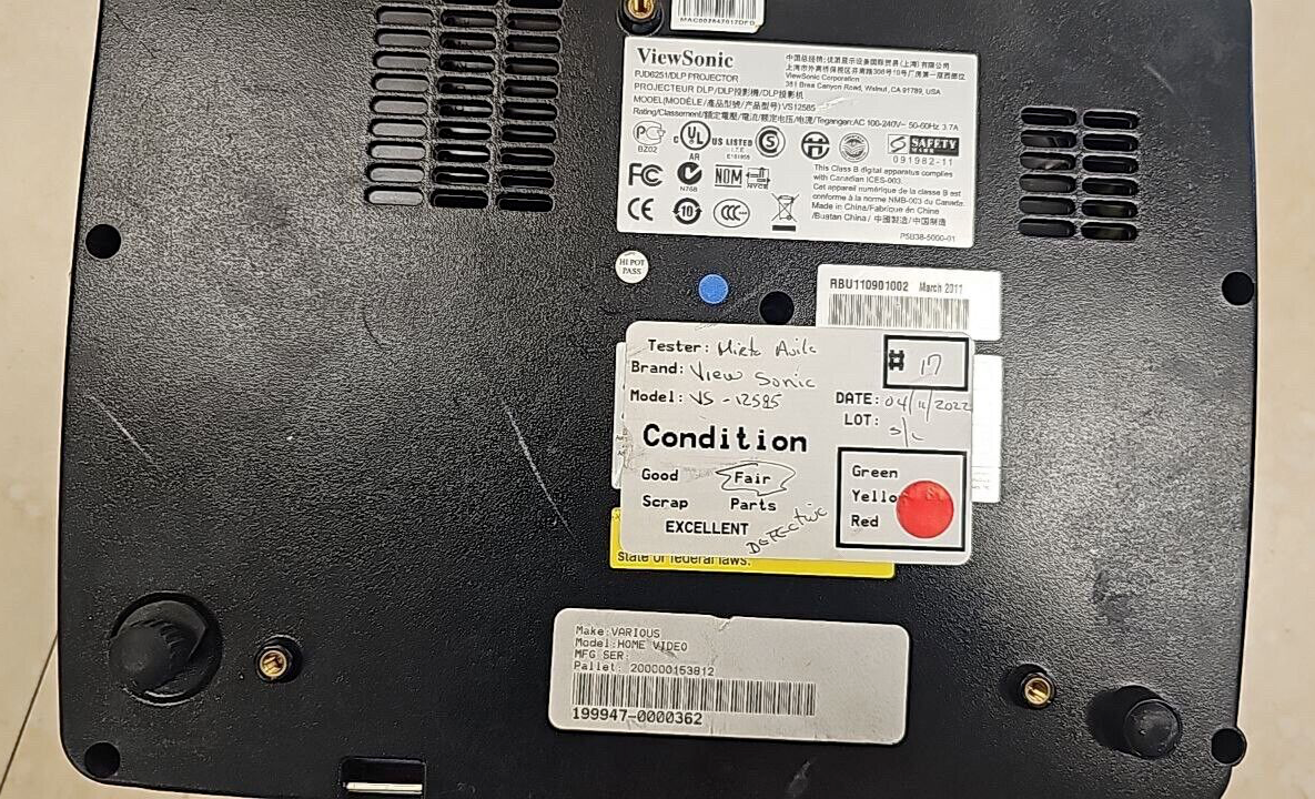 Item includes: Please note: This item includes 1x ViewSonic Projector Only ? As Pictured. No cables or accessories.