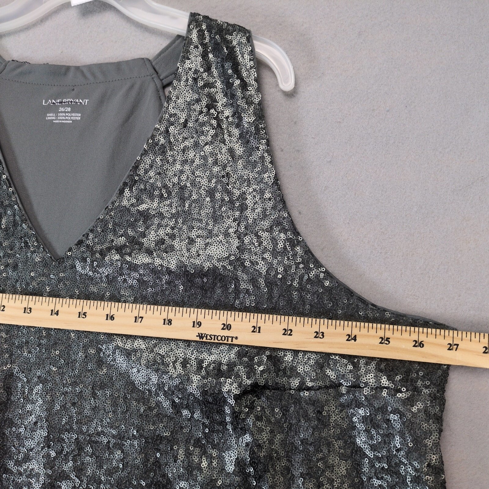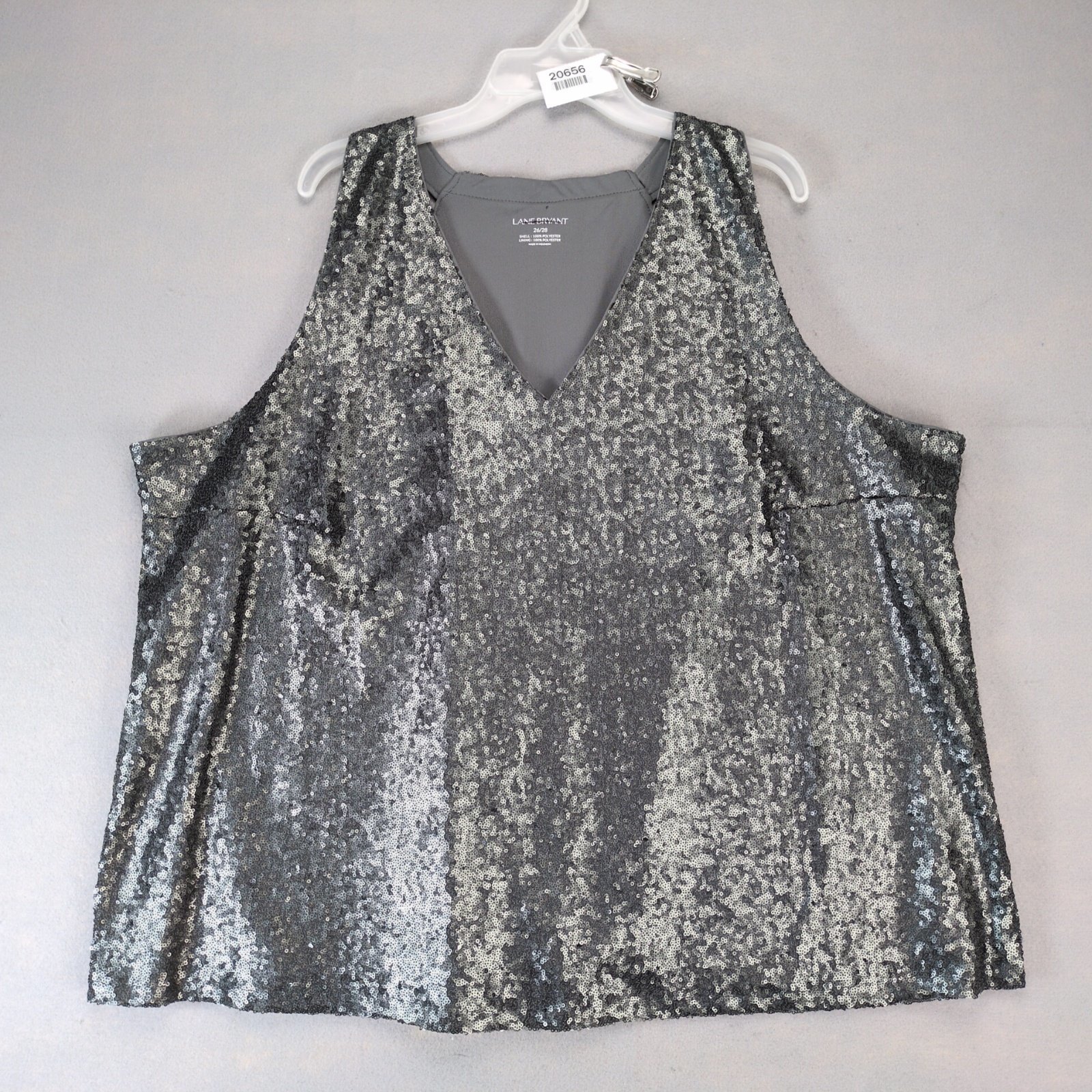 Lane Bryant Pewter Gray Sequin Tank Top Women's Plus Size 26/28 Deep V-Neck