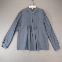 Michael Kors 100% Silk Gray Pleated Blouse Women's 12 Keyhole Neck Long Sleeve