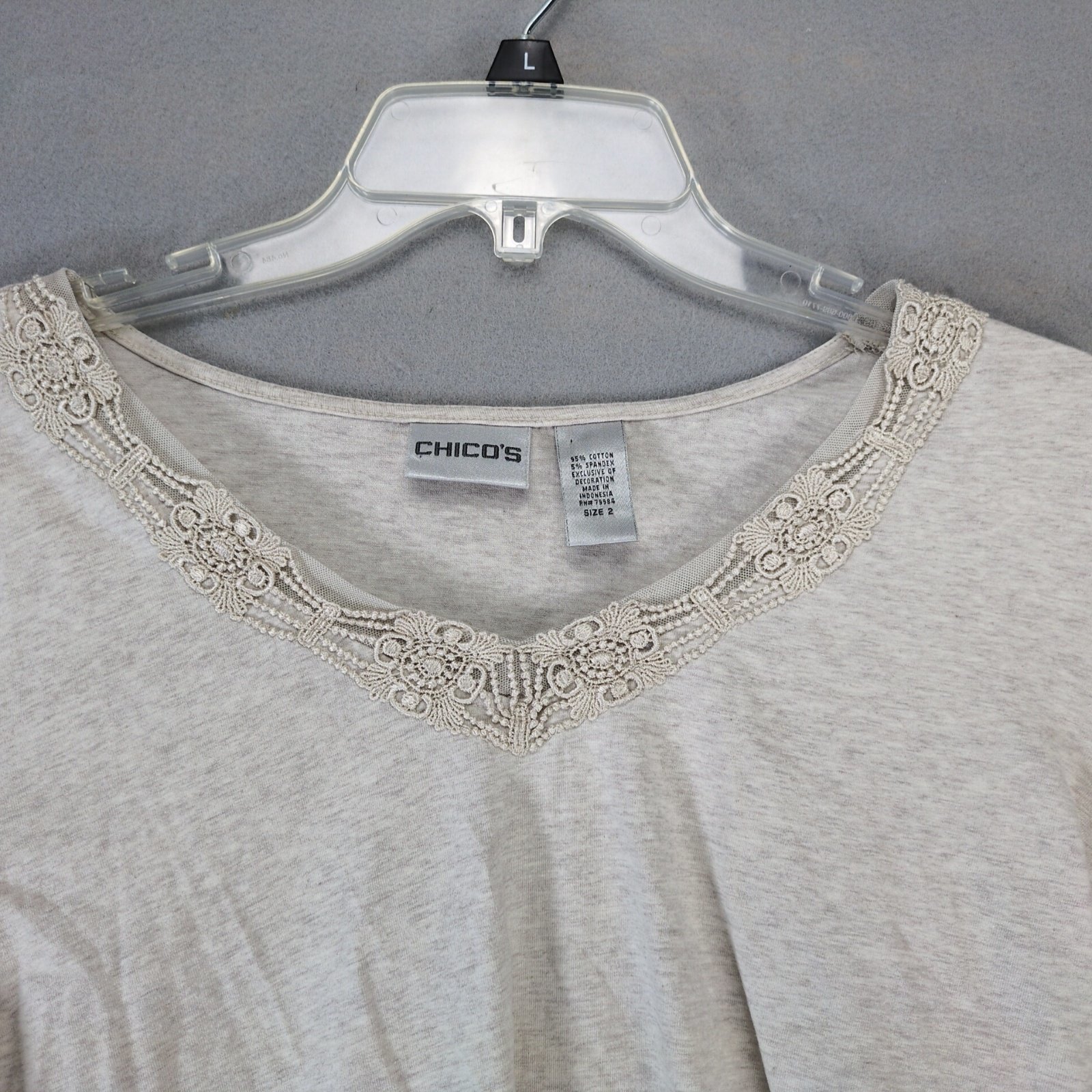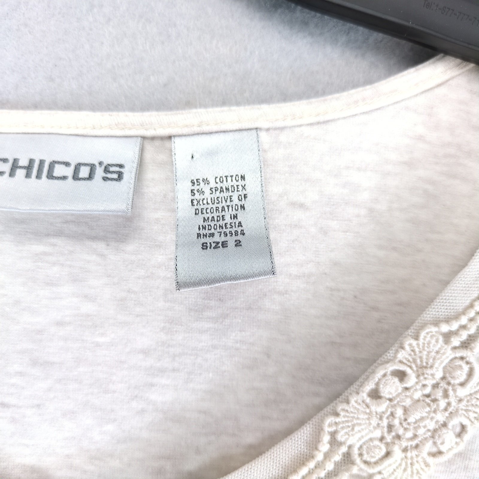 Chico's Crochet Lace Trim V-Neck Beige Top Size 2= Women's L/12 Casual Chic