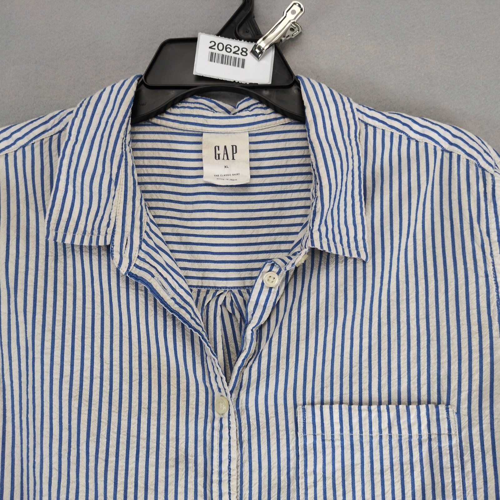 GAP The Classic Shirt Blue White Seersucker Button Up Top Women's XL Long Sleeve