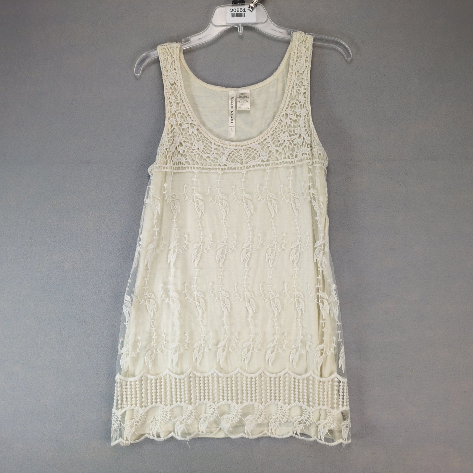 Forgotten Grace Ivory Lace Sheer Overlay Tank Top Blouse Women's L Fairy Cottage