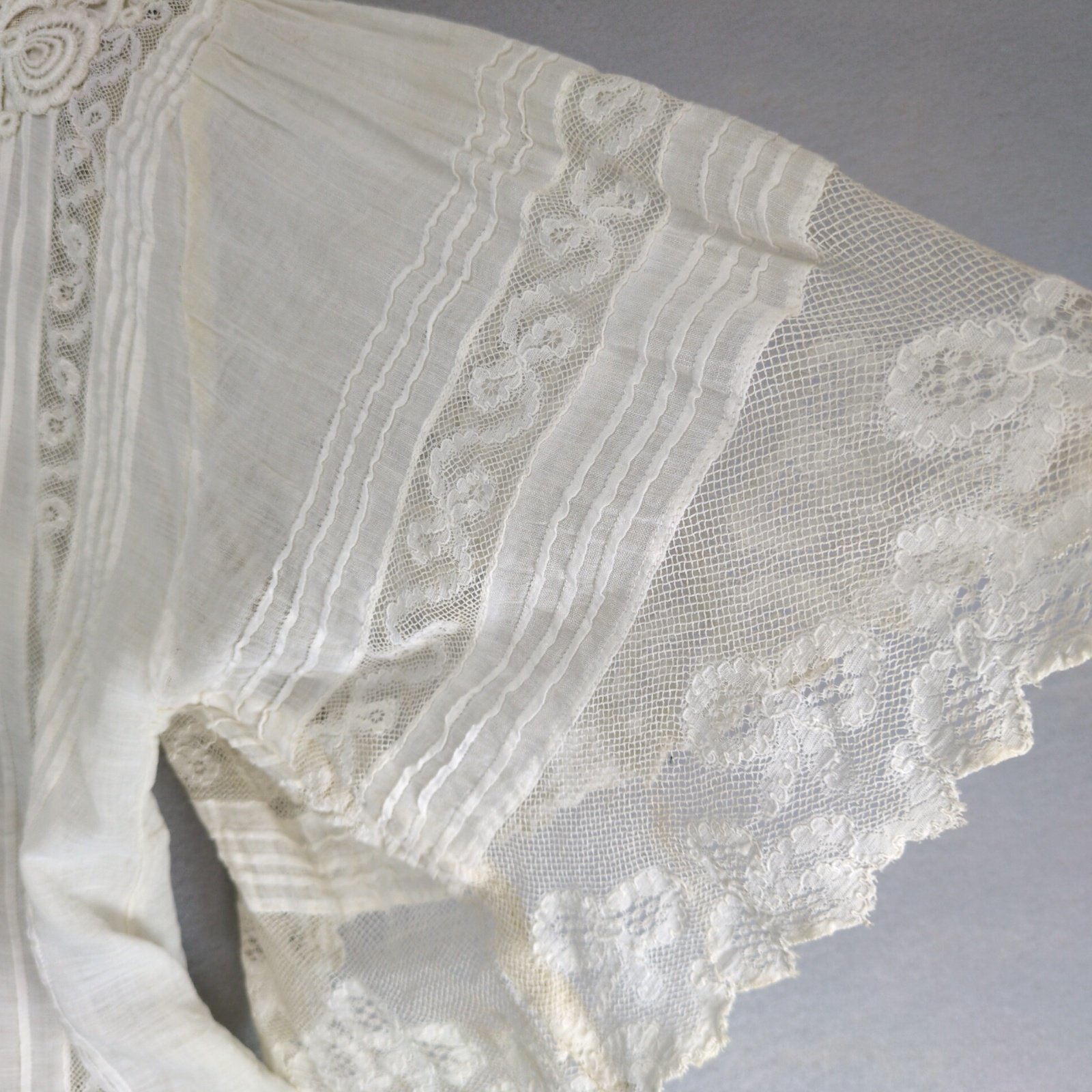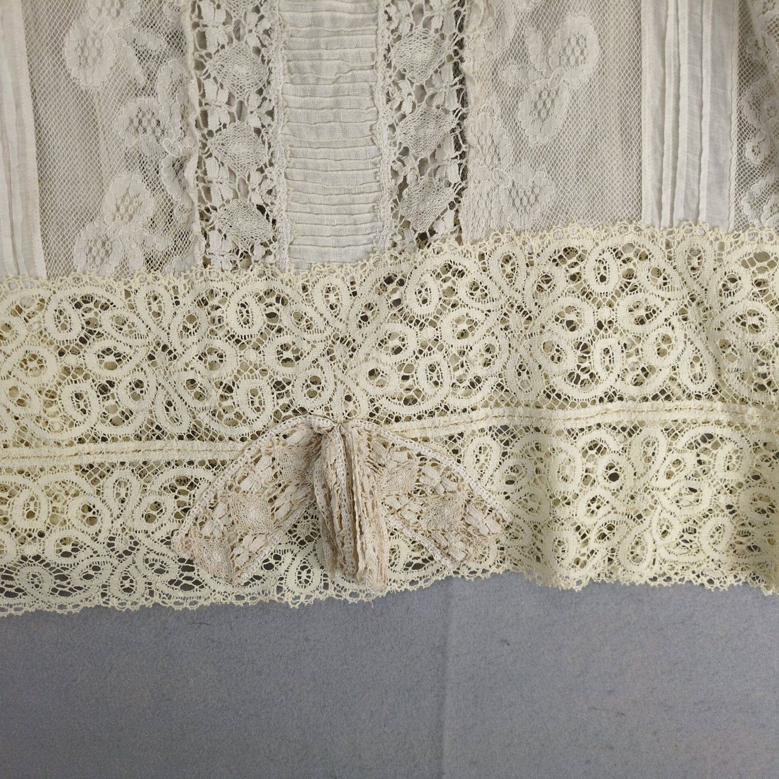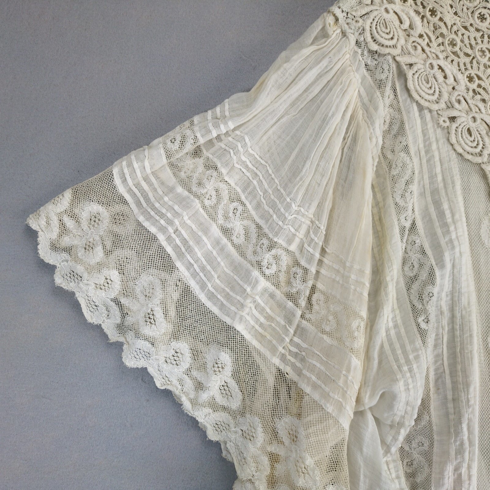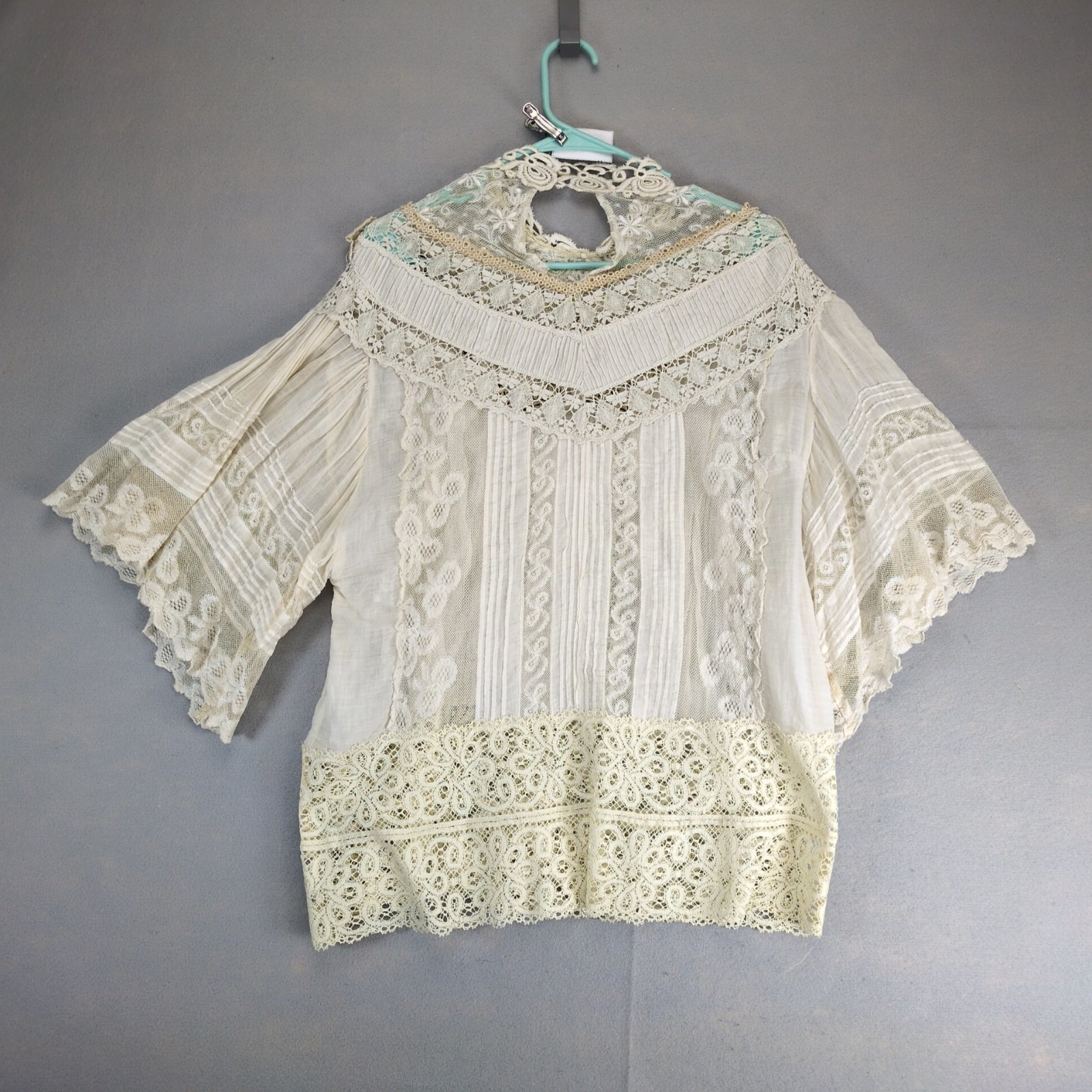 Beautiful Sheer Ivory Crochet Lace Blouse Short Flare Sleeves Women's L Coquette