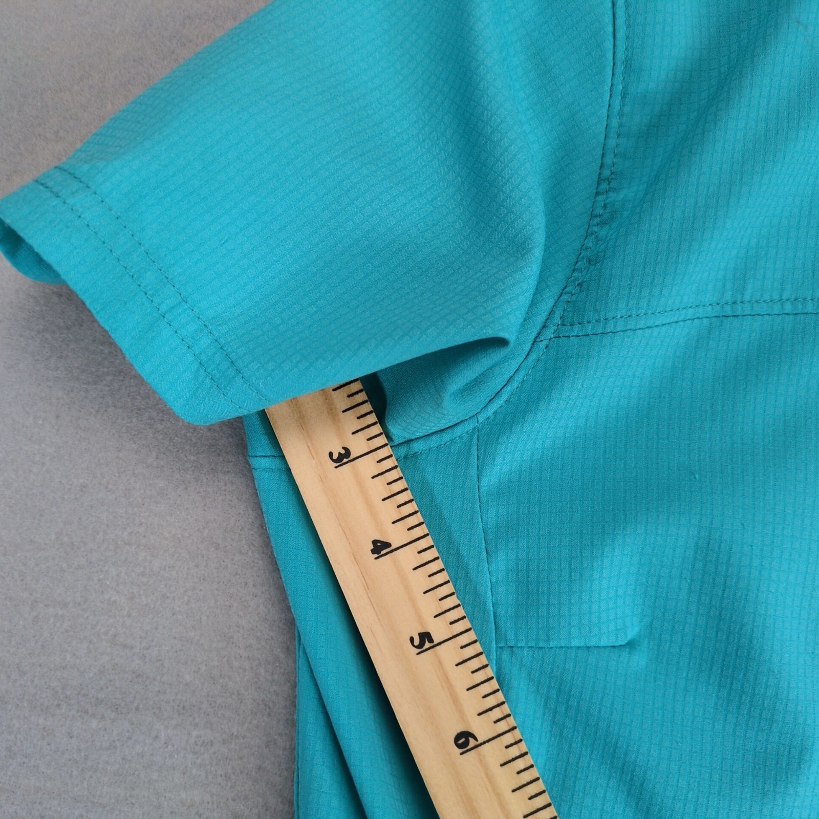 Columbia Omni-Shade Tuquoise Button Up Shirt Women's M Short Sleeve Slim Vented