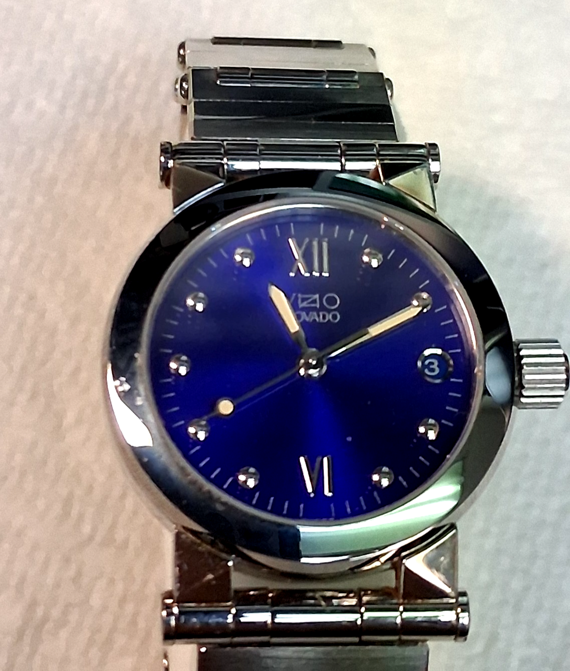 MOVADO 83 E1 848 Vizio Round Date Quartz Women's Watch BLUE DIAL