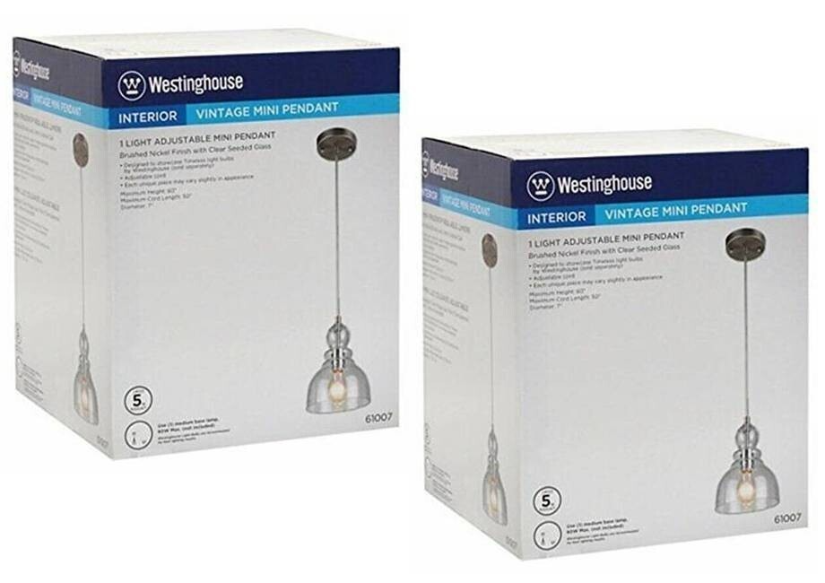 Westinghouse 61007 Fiona Indoor 1-Light Adjustable Mini Pendant Ceiling Lamp, Brushed Nickel (2-PACK)