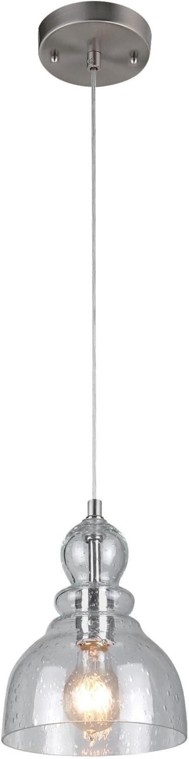 The Westinghouse Fiona Indoor Adjustable Mini Pendant is a stunning lighting fixture that brings both elegance and functionality to your indoor spaces. With its vintage-inspired design, this mini pendant offers a blend of modern style and classic charm, making it an ideal choice for foyers, dining rooms, kitchens, bedrooms, or living areas. The hand-blown seeded glass shade adds a unique touch, diffusing light in a soft, ambient glow, while the brushed nickel finish offers a timeless appeal that complements various interior styles. Whether you're decorating a traditional home or a more contemporary space, this pendant light adds the perfect accent to elevate the room's aesthetic.