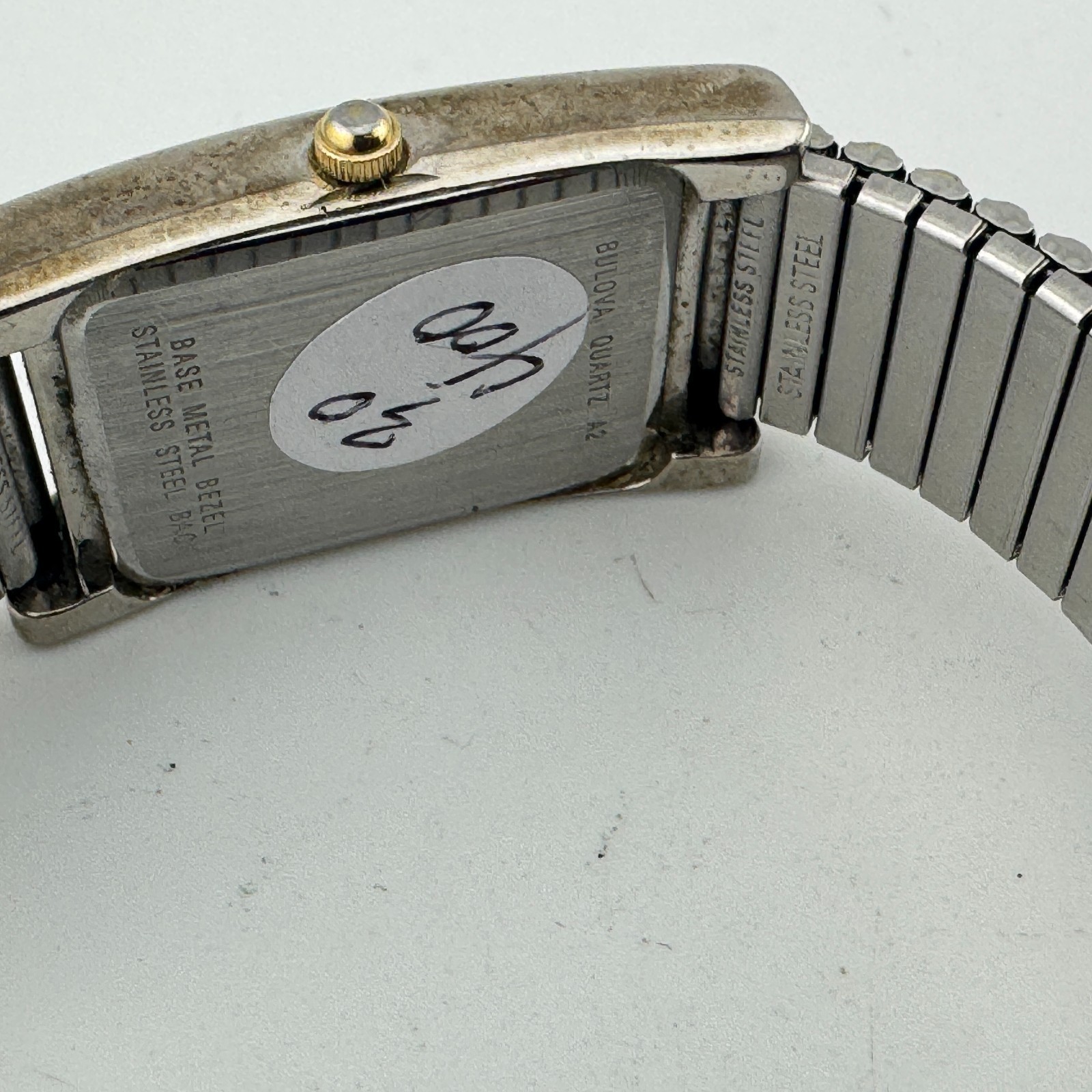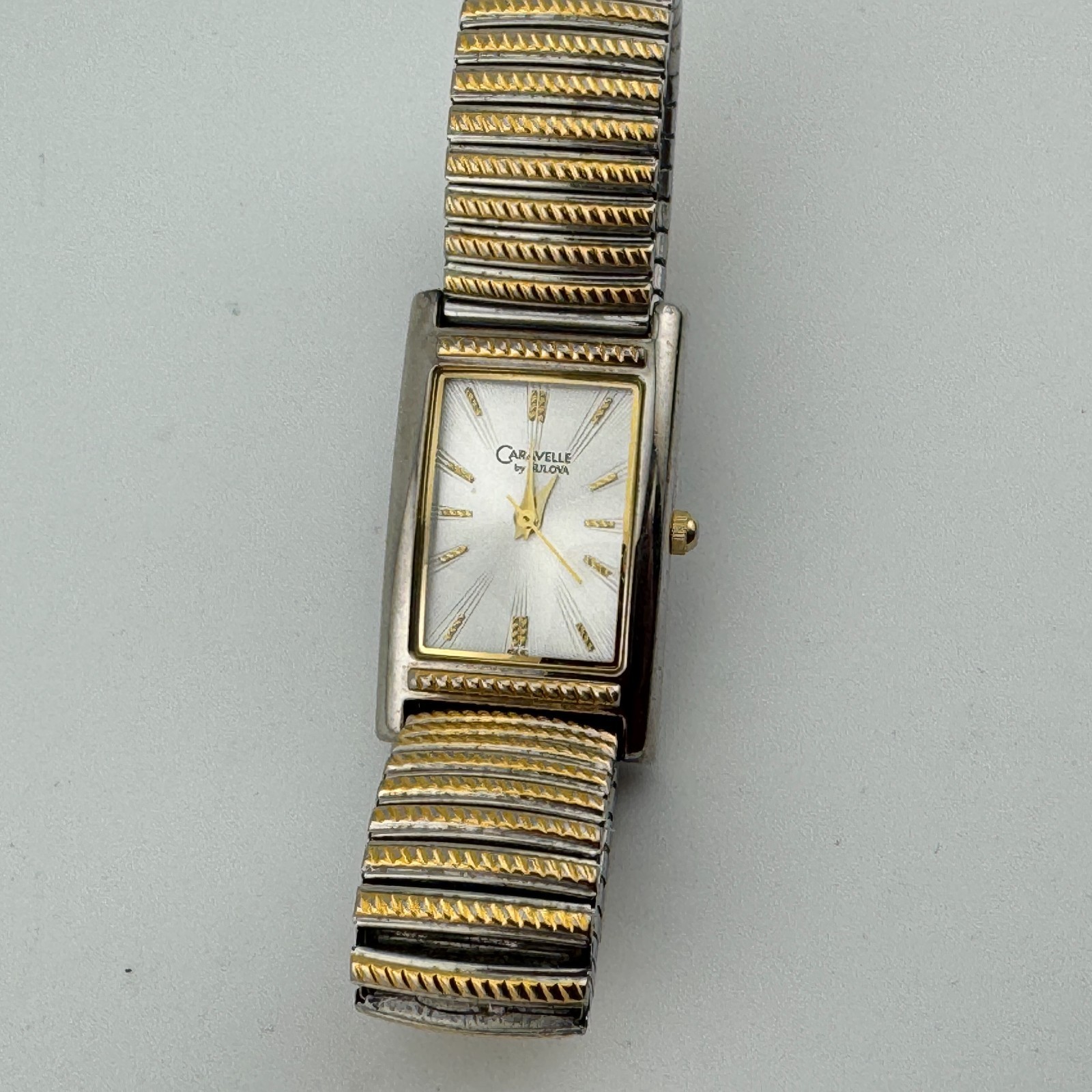 Caravelle-Bulova Quartz Watch 45L40 Women Dual Tone Stretch Rectangle New Batter