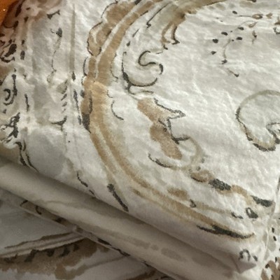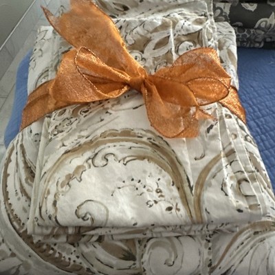 As BOUNS I am adding 2 king shams and 1 standard sham in the same pattern. I have tried to get these clean but they look discolored to me and the standard has a couple of yellow stains. Instead I?m throwing them in so maybe you think they are ok to use and the standard can be made into a deco pillow or use it on the flip side. They are in great condition. I have read up on this pattern and they are saying some of this pattern has different ivory?s.