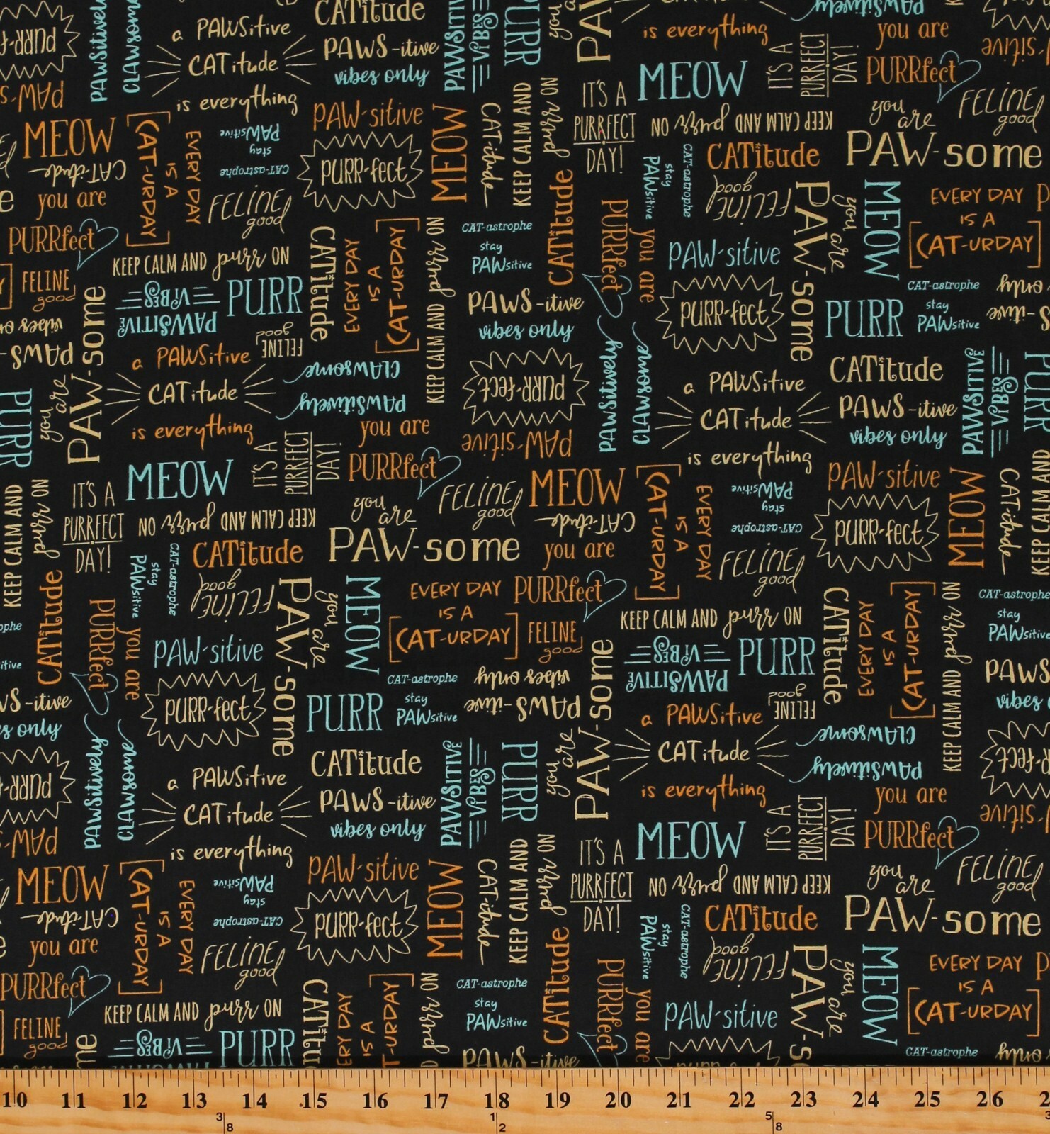 Cotton Cats Kittens Animals Words Descriptions Puns Felines Purrfect Day Black Cotton Fabric Print by the Yard (52373-2)