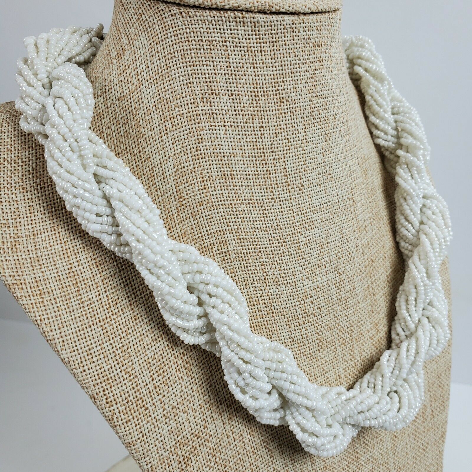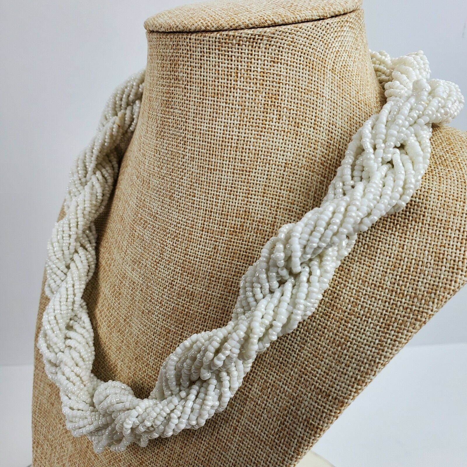 Vintage Tribal Native Glass Seed Bead White Rope Style STATEMENT Necklace 23"