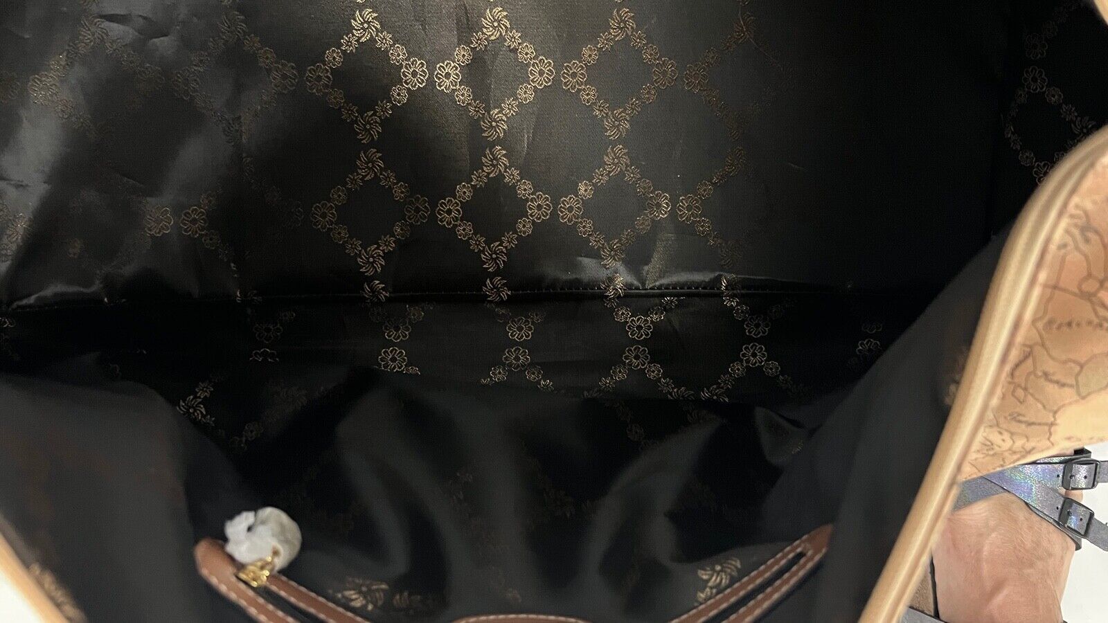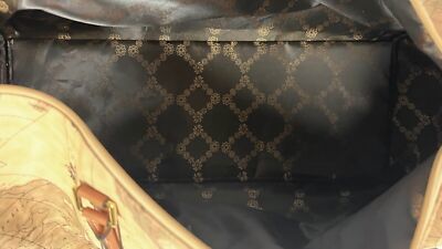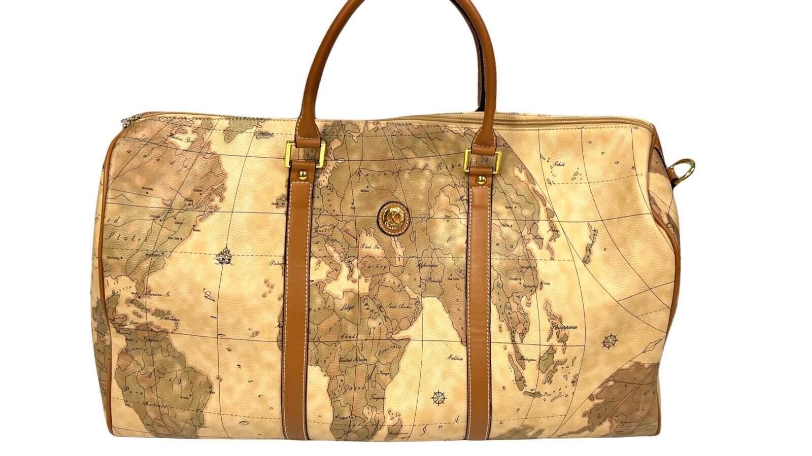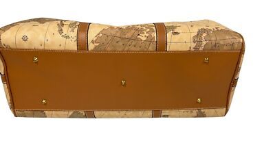 Kala Collection Global Map Travel Bag Overnight Carry On Luggage Tote XL Duffle- near new, still has silicone paks, and the zipper inside is still covered, all immaculate, BUT missing a long shoulder strap. It doesn't state the material, it FEELS like pebbled leather but I am not saying that since it is not marked. It is an excellent Patricia Nash look-a-like. Big enough for an overnight or carry-on.