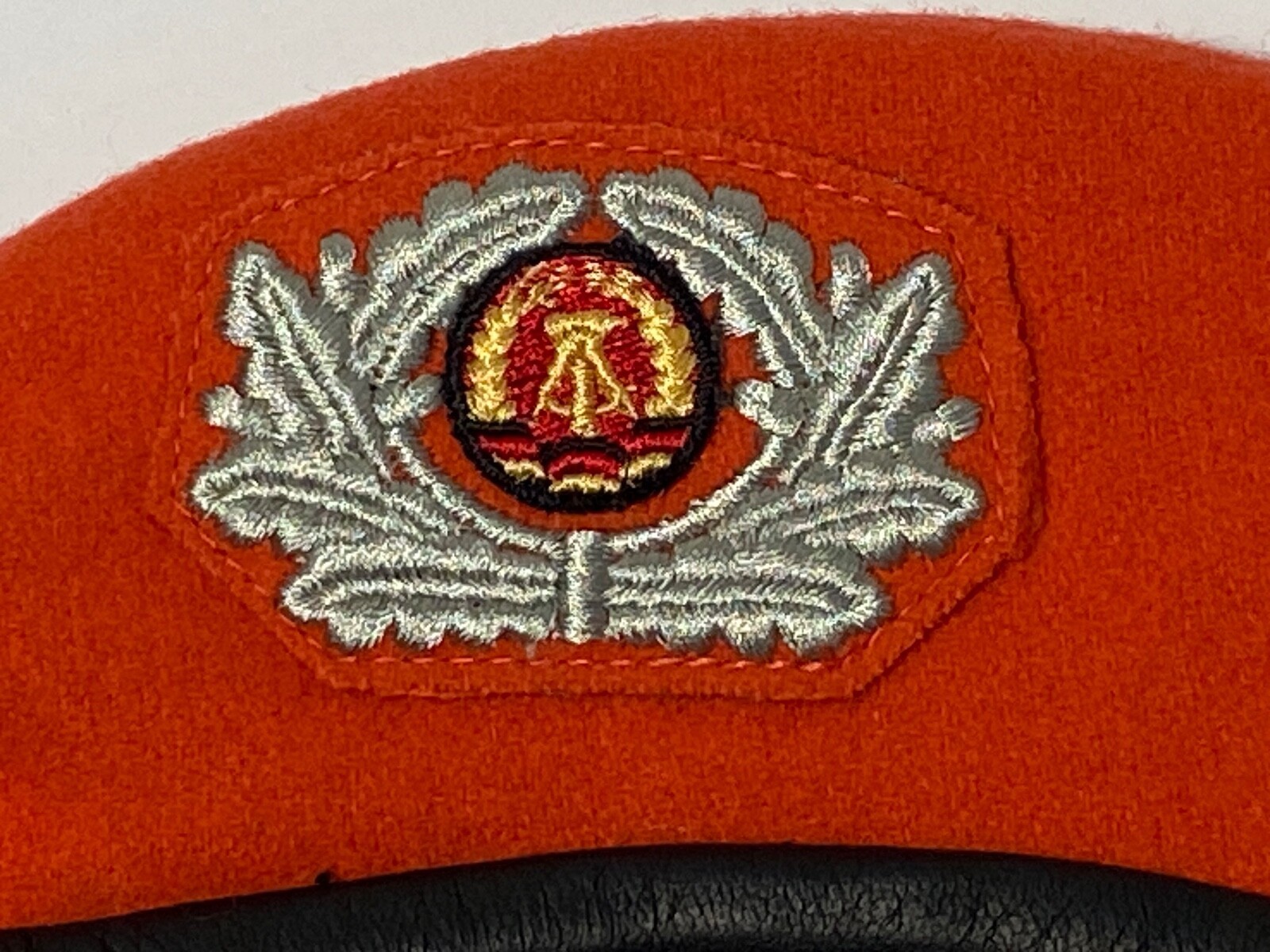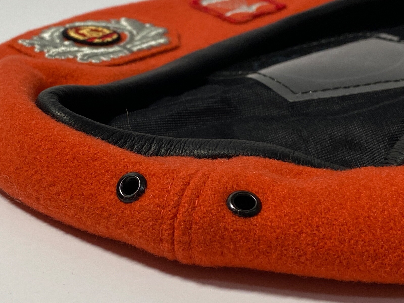 This DDR Paratrooper Parade Beret would have been worn as service or ceremonial dress by Officers of the East German Paratroopers. Initially, they would have worn grey berets (baskenmutze), but this later changed to orange to represent the colored caps worn during the peasant uprising in Germany during the 15th century.