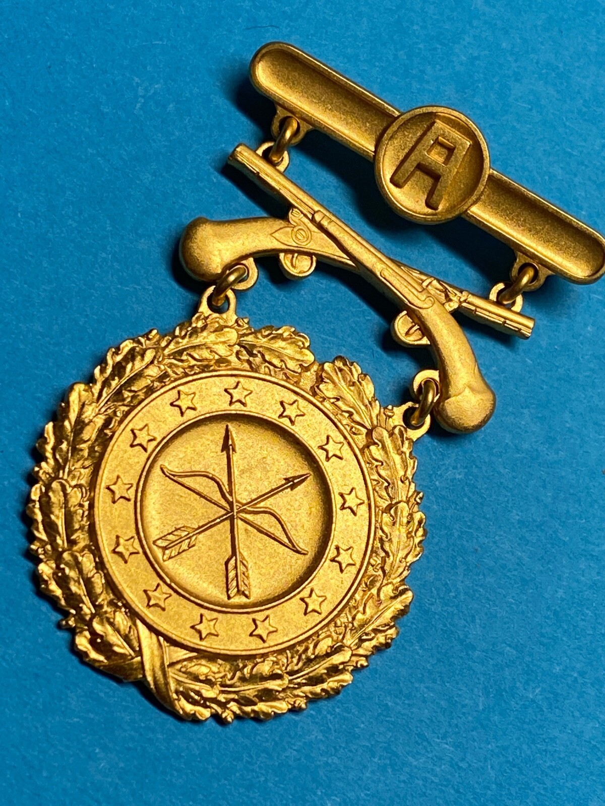 1950?s, U.S. 1st ARMY GROUP, EXCELLENCE IN COMPETITION (EIC), PISTOL, GOLD, SHOOTING BADGE, PINBACK, HALLMARKED