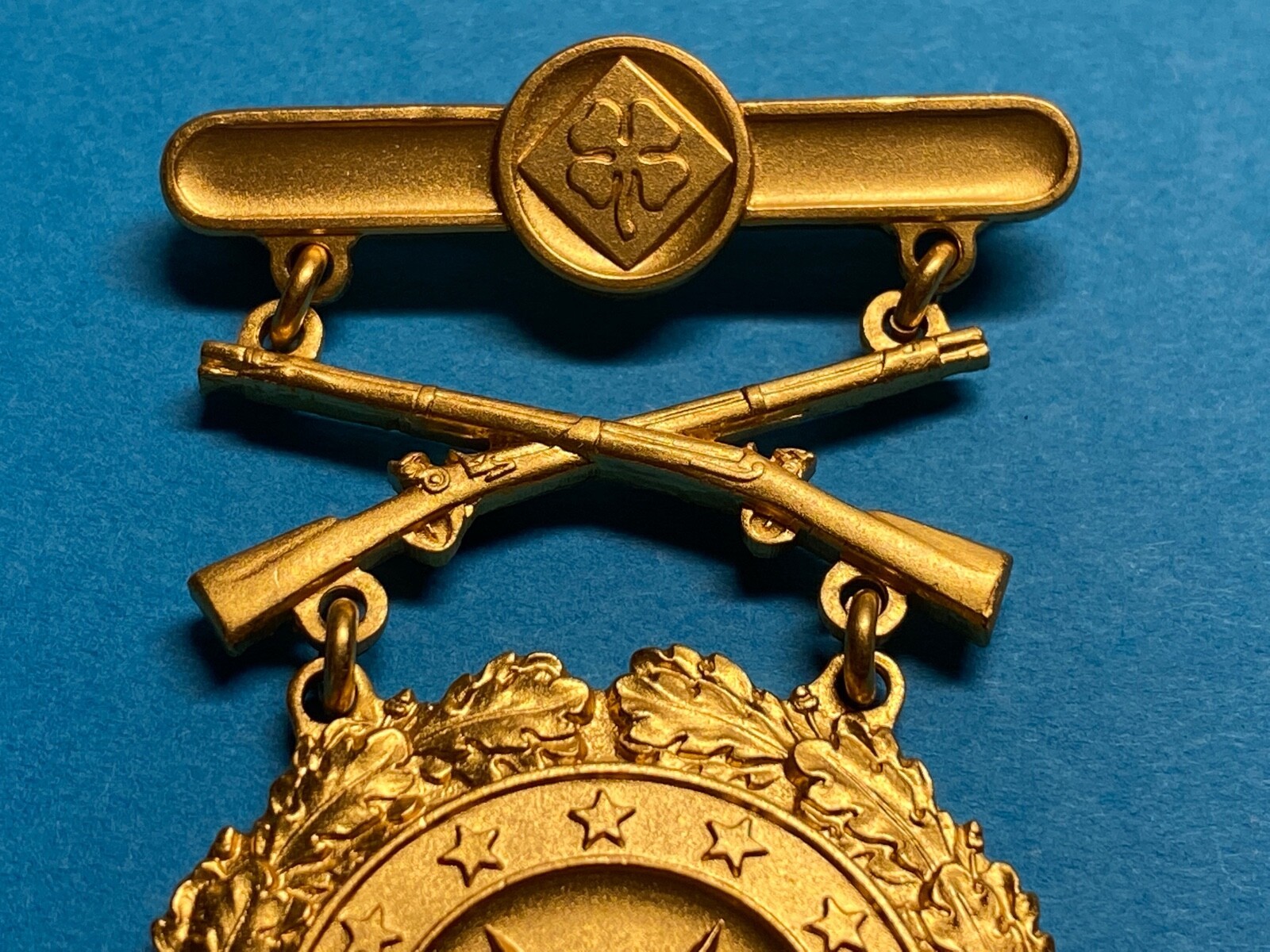 4th ARMY, EXCELLENCE IN COMPETITION EIC, RIFLE, GOLD, BADGE, PINBACK, HALLMARKED
