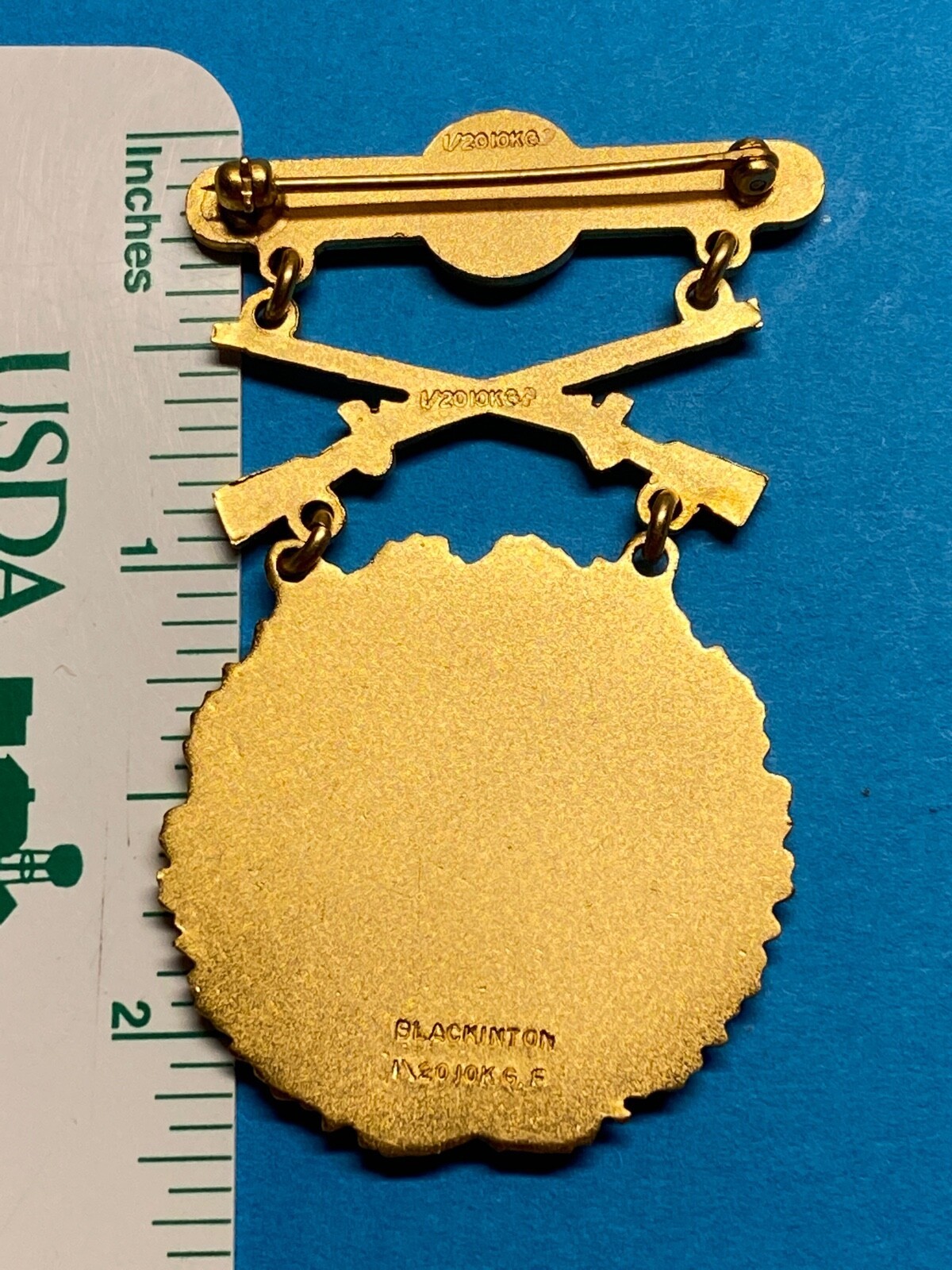 1950?s, U.S. 4th ARMY GROUP, EXCELLENCE IN COMPETITION (EIC), RIFLE, GOLD, SHOOTING BADGE, PINBACK, HALLMARKED