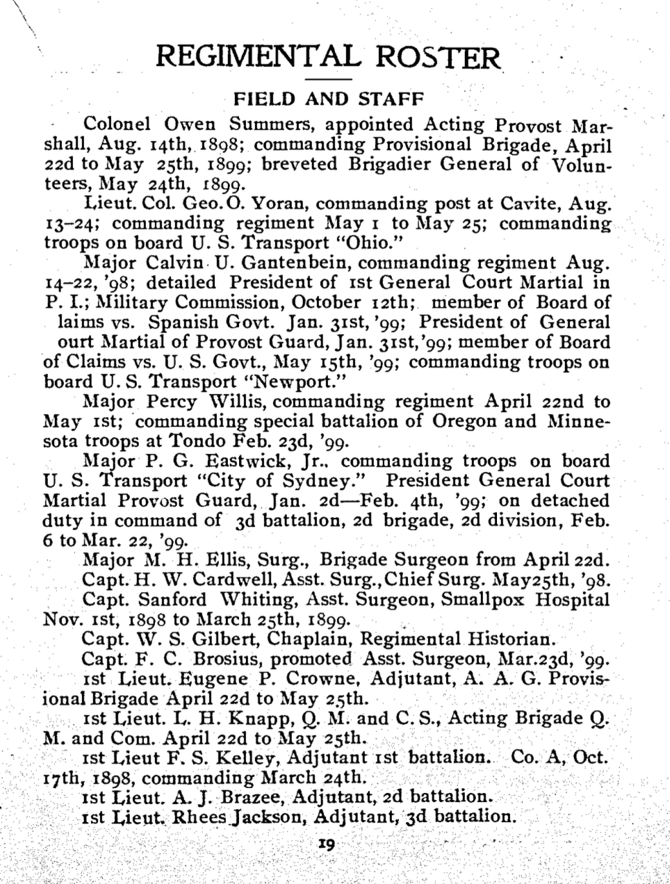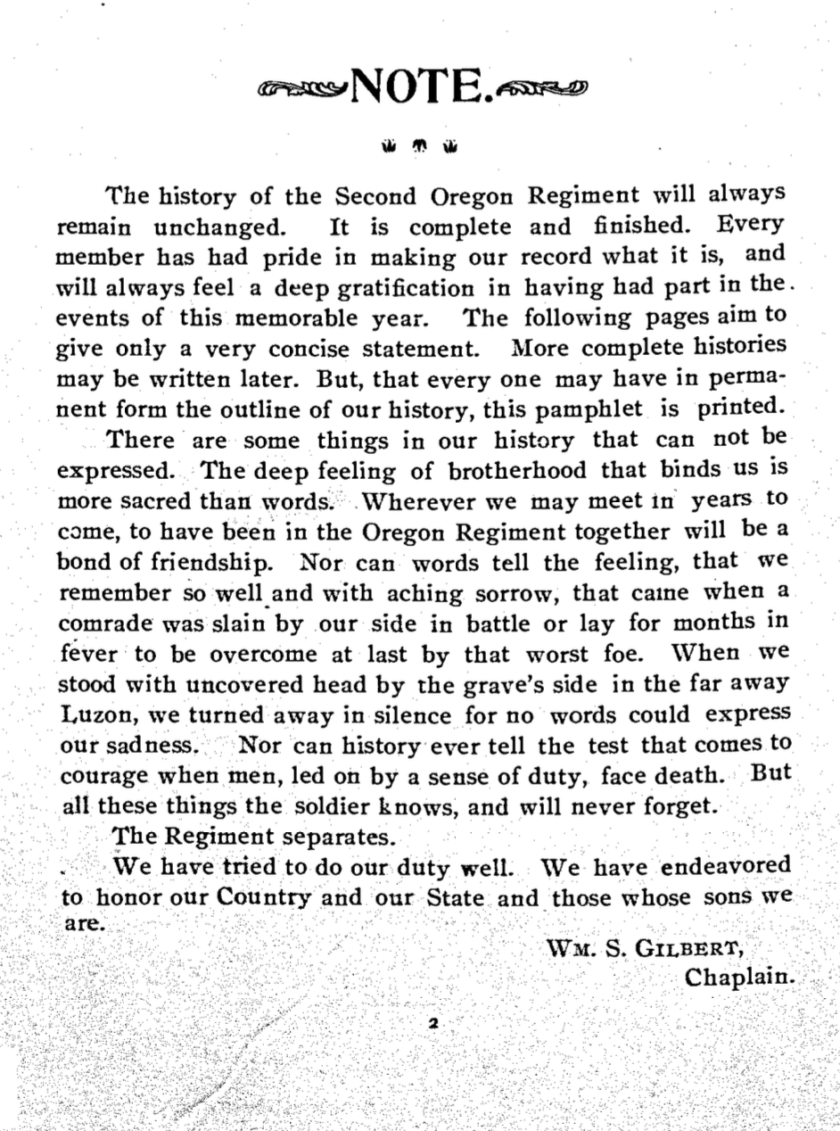 OREGON IN THE PHILIPPINES, 2ND DIV. 8th ARMY CORPS, 2nd RGT, OREGON VOLUNTEERS