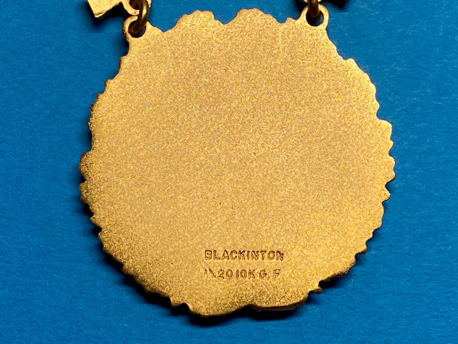 This is an original prototype made in 1956. Pinback with functional rotating clasp. The reverse is hallmarked (medal reverse) ? BLACKINTON, 1/20-10 KGF at the base of the medal; ?1/20 KGF? at the weapons intersection, and 1/20 KGF on the brooch. In some cases, the letter ?F? is hard to see. Unused, New Old Stock (NOS). Nice clean EIC badge/medal.