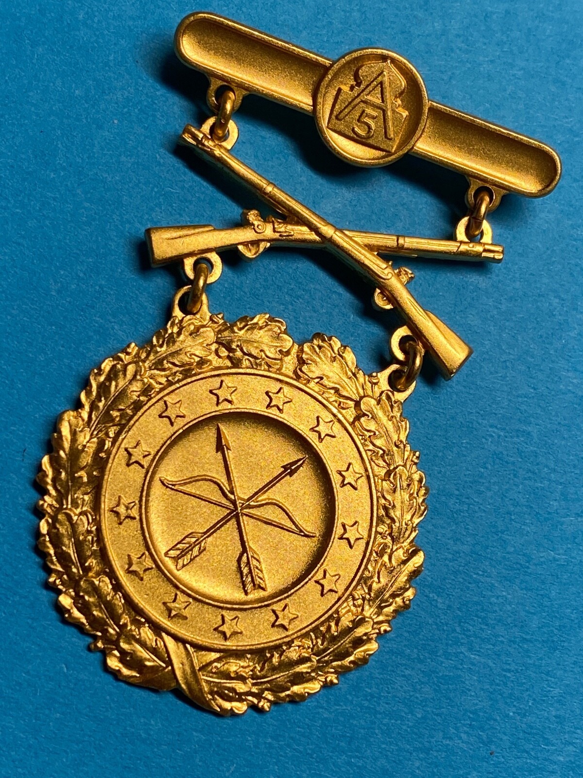 1950?s, U.S. 5th ARMY GROUP, EXCELLENCE IN COMPETITION (EIC), RIFLE, GOLD, SHOOTING BADGE, PINBACK, HALLMARKED