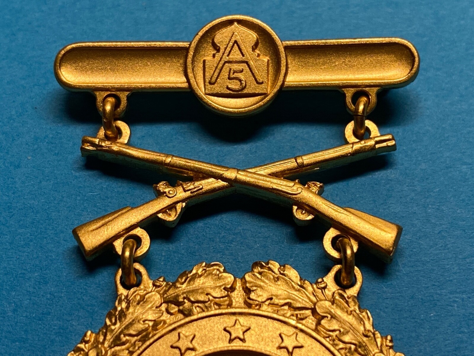 5th ARMY, EXCELLENCE IN COMPETITION EIC, RIFLE, GOLD, BADGE, PINBACK, HALLMARKED