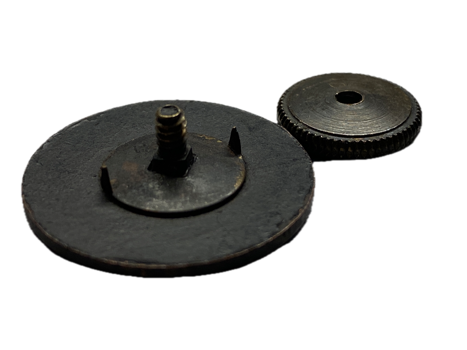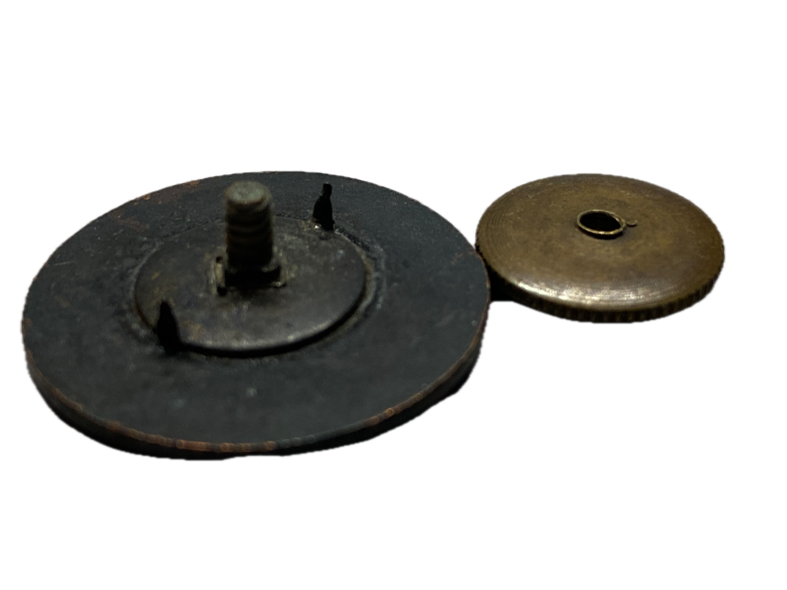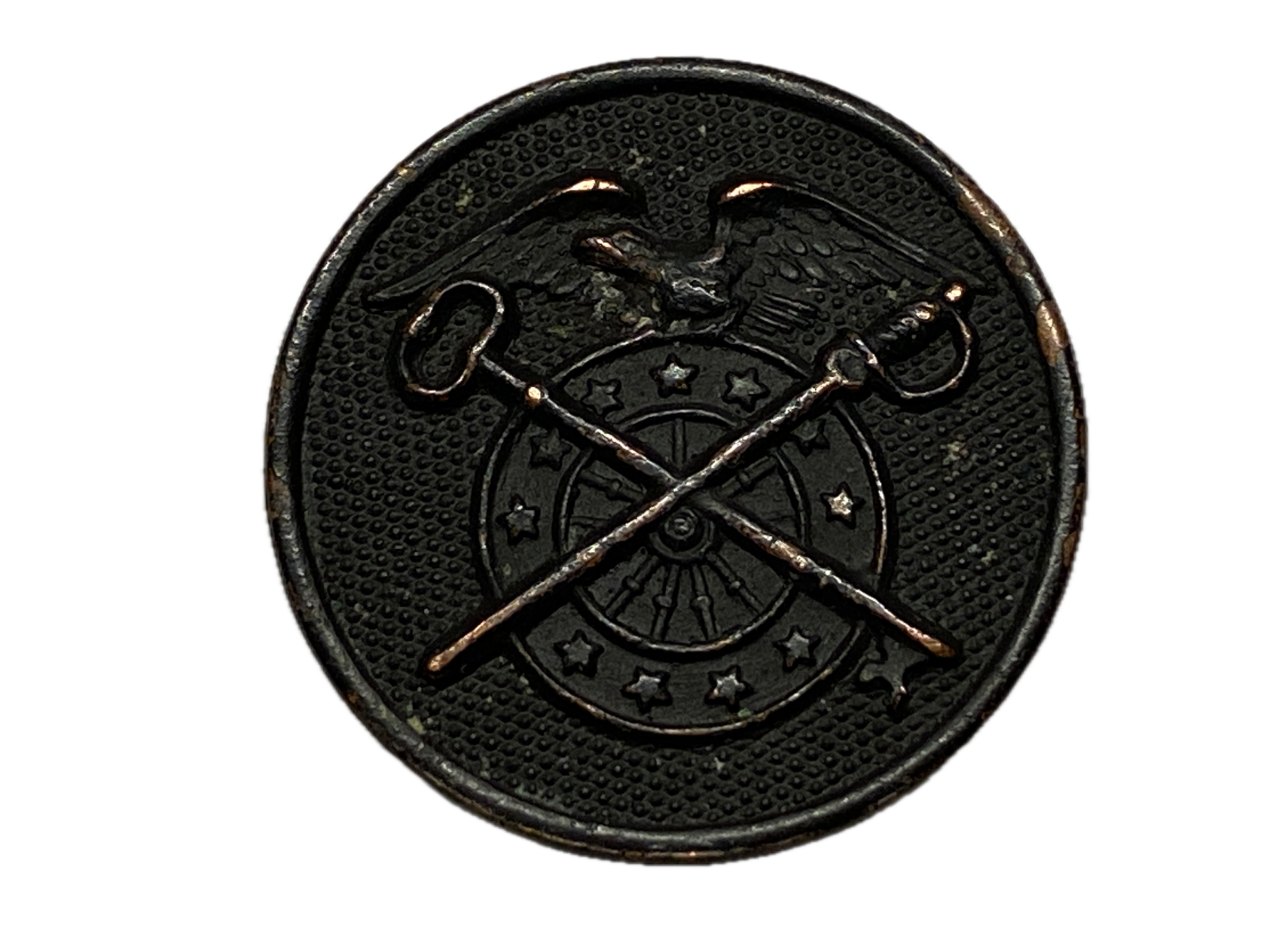 On October 8, 1907 the War Department issued Circular No. 68 that described new insignia to be worn on the standing collars of enlisted men's service uniforms. These were to have been two pairs of one inch bronze disks. On each side of the collar there was a pair, one bearing the letters U.S. and the other the branch of service. The insignia were attached by a threaded post and thumb screw nut. Older enlisted insignia that were in use were cut out emblems of the service branch similar to officer's collar insignia. The edges of the cut out insignia snagged on brush and the insignia came loose. The pins frequently broke on these and it was hoped that these new disks would be nearly indestructible.