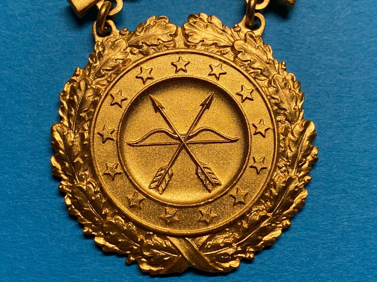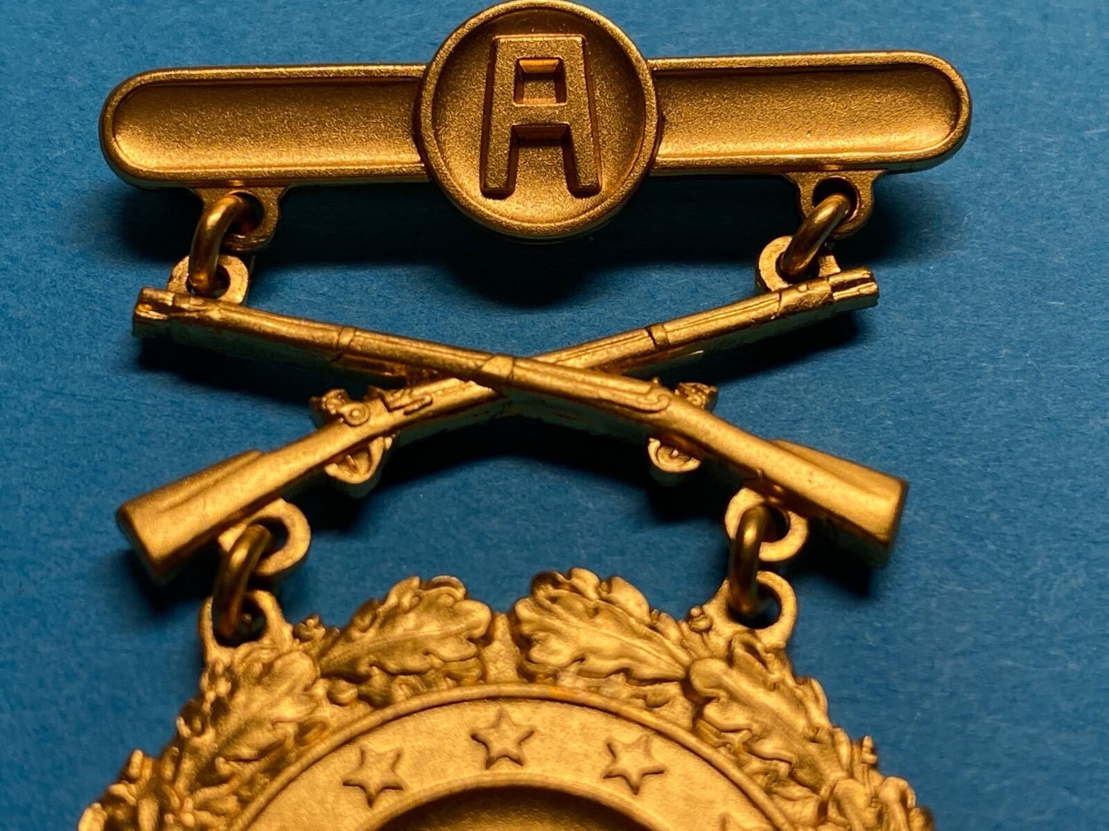 1950s prototype leg badges in gold, silver and bronze colors, both rifle and pistol. Each group was made with 9 different brooches: National matches, army wide matches, each CONUS army area, and Military District of Washington.