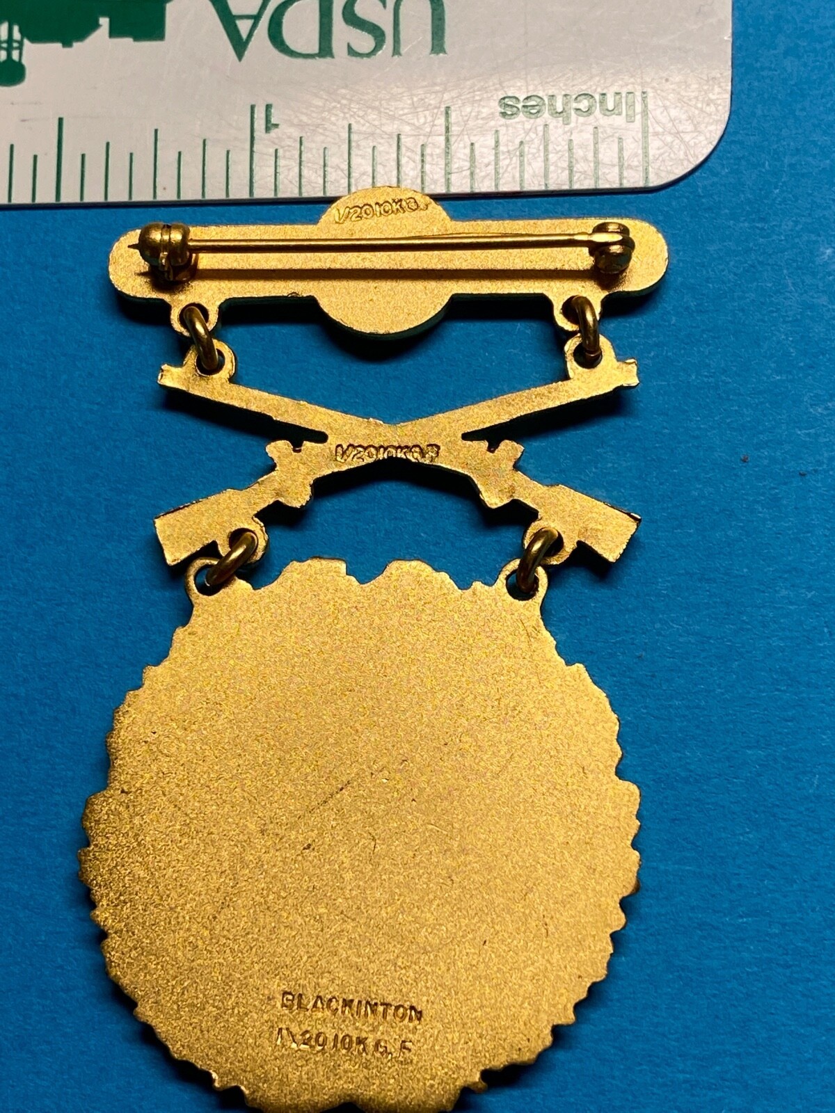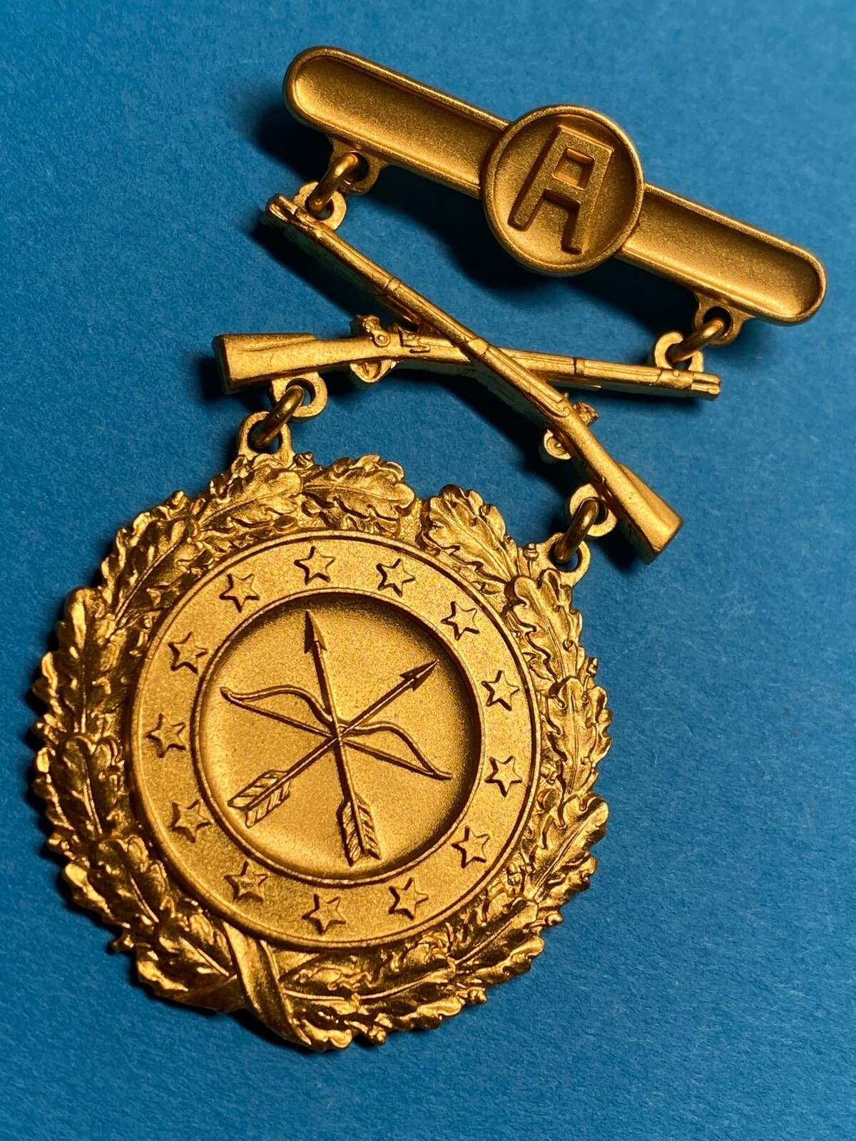 1950?s, U.S. 1st ARMY GROUP, EXCELLENCE IN COMPETITION (EIC), RIFLE, GOLD, SHOOTING BADGE, PINBACK, HALLMARKED