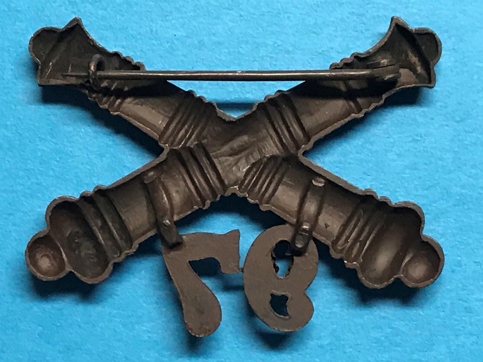 CIRCA 1902-1905, U.S. ARMY ARTILLERY CORPS, BRONZE, 97th FIELD ARTILLERY, ENLISTED, SERVICE COAT INSIGNIA