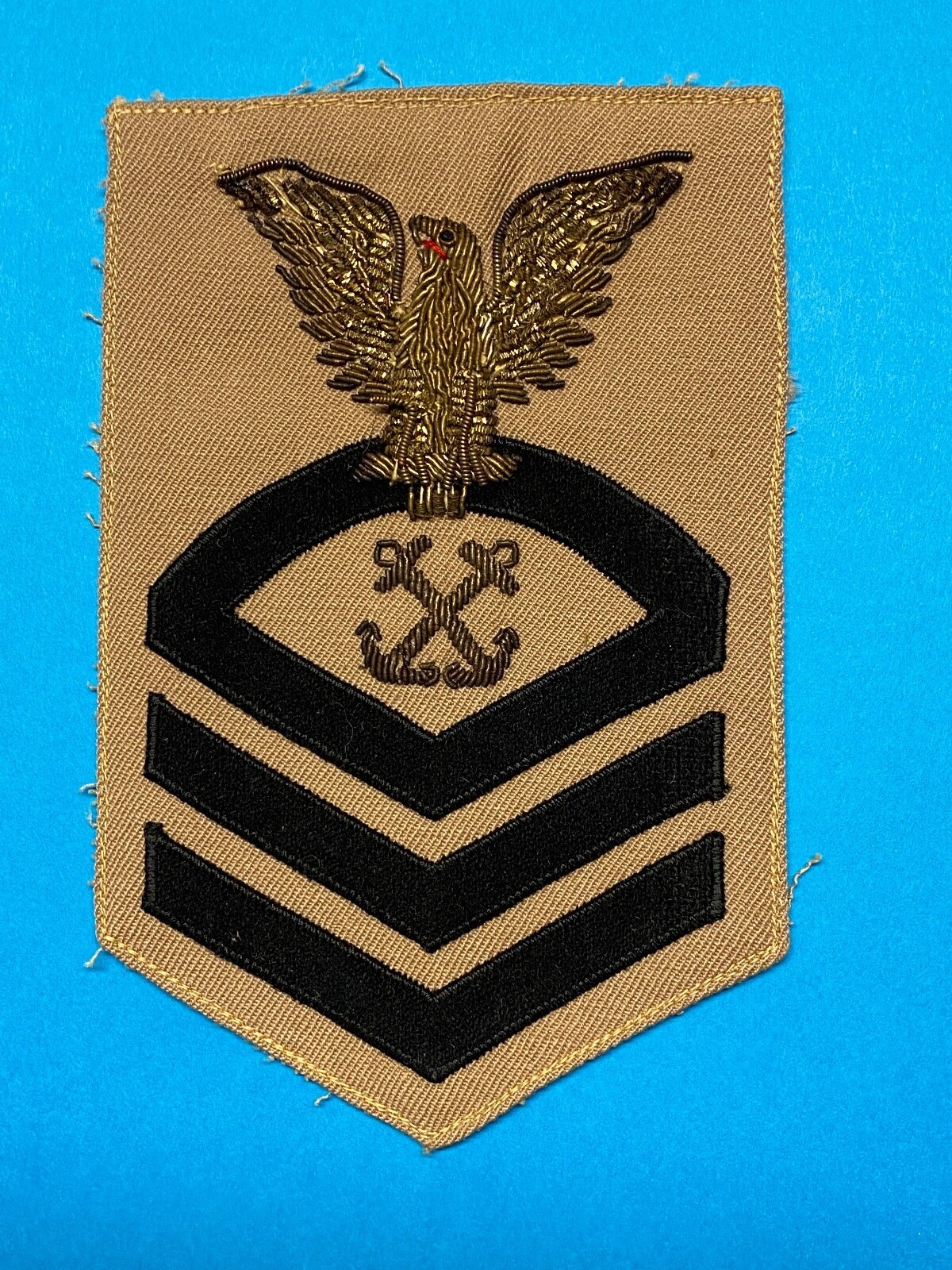 UNITED STATES NAVY, U.S.N. CHIEF, BOATSWAIN'S MATE, BULLION, KHAKI, RATING BADGE