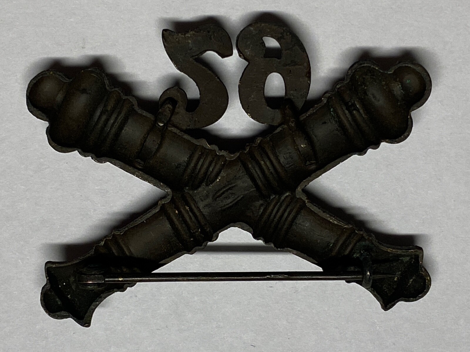 CIRCA 1902-1905, U.S. ARMY ARTILLERY CORPS, BRONZE, 29th FIELD ARTILLERY, ENLISTED, SERVICE COAT INSIGNIA